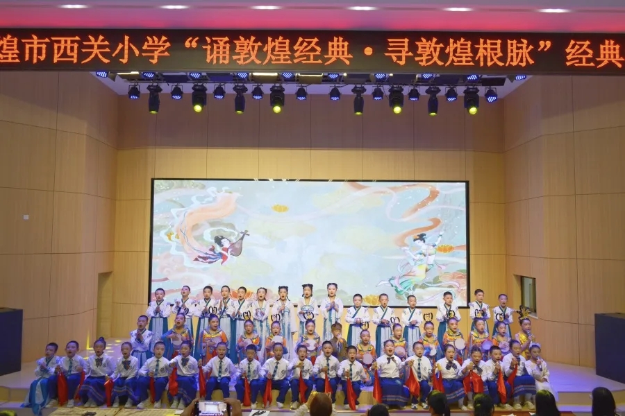 解码敦煌文化“活基因”,培育文化自信时代新人。敦煌市将敦煌文化全方位融入学生教育的各个环节与学段,广泛开展读敦煌美文、写敦煌书法等系列活动。联合敦煌研究院等单位,举办敦煌文化进校园骨干教师专题培训班,培养80余名宣传骨干。每年选拔40余名优秀中小学生成为敦煌莫高窟“小小讲解员”。系统推动敦煌文化研学实践,组织师生走进敦煌莫高窟、敦煌博物馆等爱国主义教育基地,观赏《又见敦煌》《乐动敦煌》《千手千眼》《敦煌盛典》等高端剧目,不断拓展思政教育平台。持续推进“一校一品”特色学校建设,将敦煌文化融入学校硬件建设与学生素养提升中。飞天乐舞、敦煌书法等非遗项目在校园蓬勃发展,敦煌舞大课间、敦煌文化校服等创新举措引发广泛关注,“诵敦煌经典·寻敦煌根脉”等敦煌文化传承创新活动已经在校园蔚然成风。