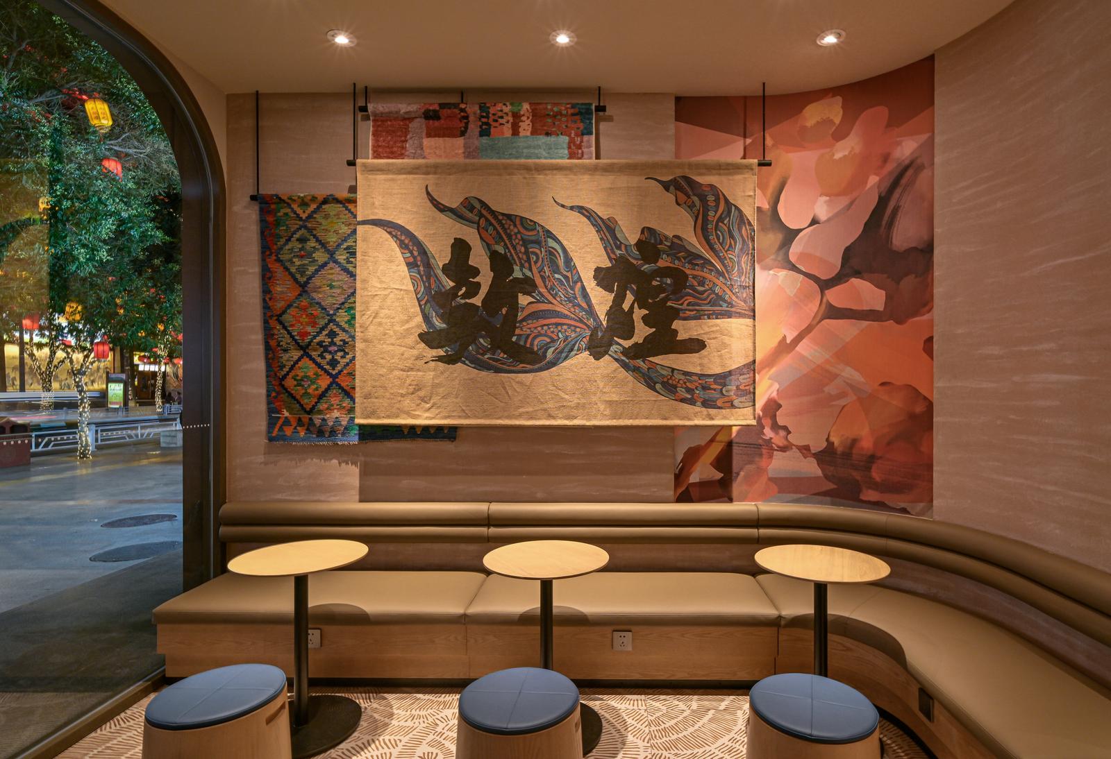 夜幕降临之际,星巴克店内的灯光映照着墙面上的飞天壁画,咖啡的醇香浓烈与丝绸之路悠扬的驼铃声相互映衬、相得益彰。游客在沉浸式体验丝绸之路的古老文明后,在极具国际范儿的咖啡馆感受中西文化的完美碰撞,来一场时间与空间的完美对话。