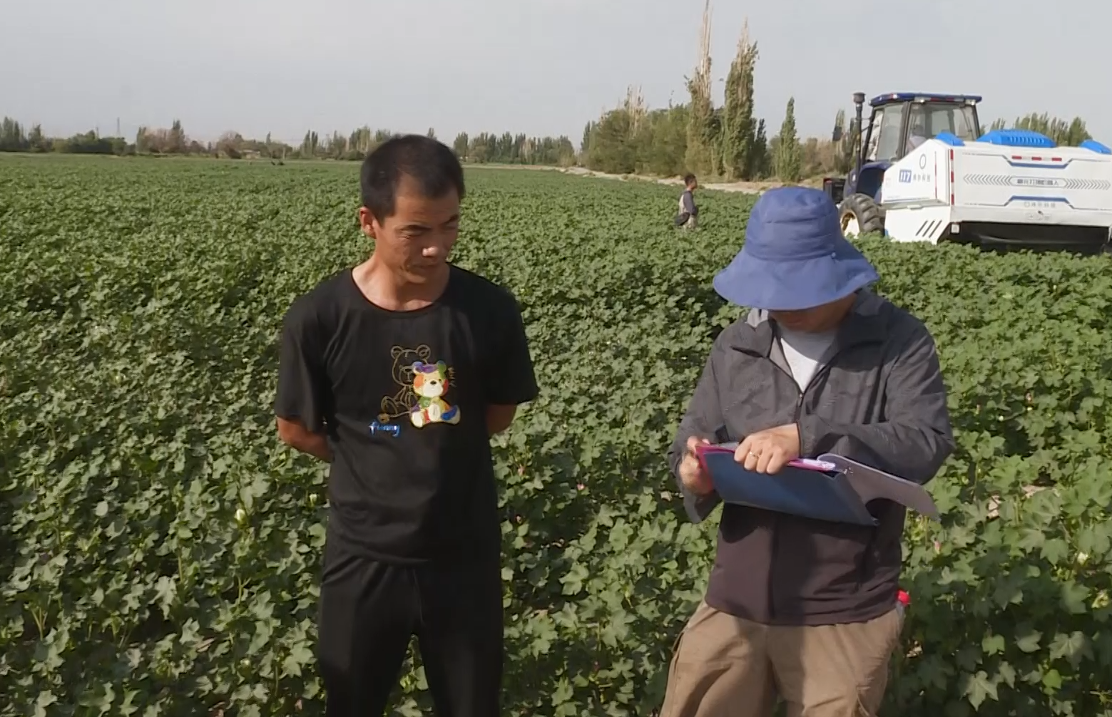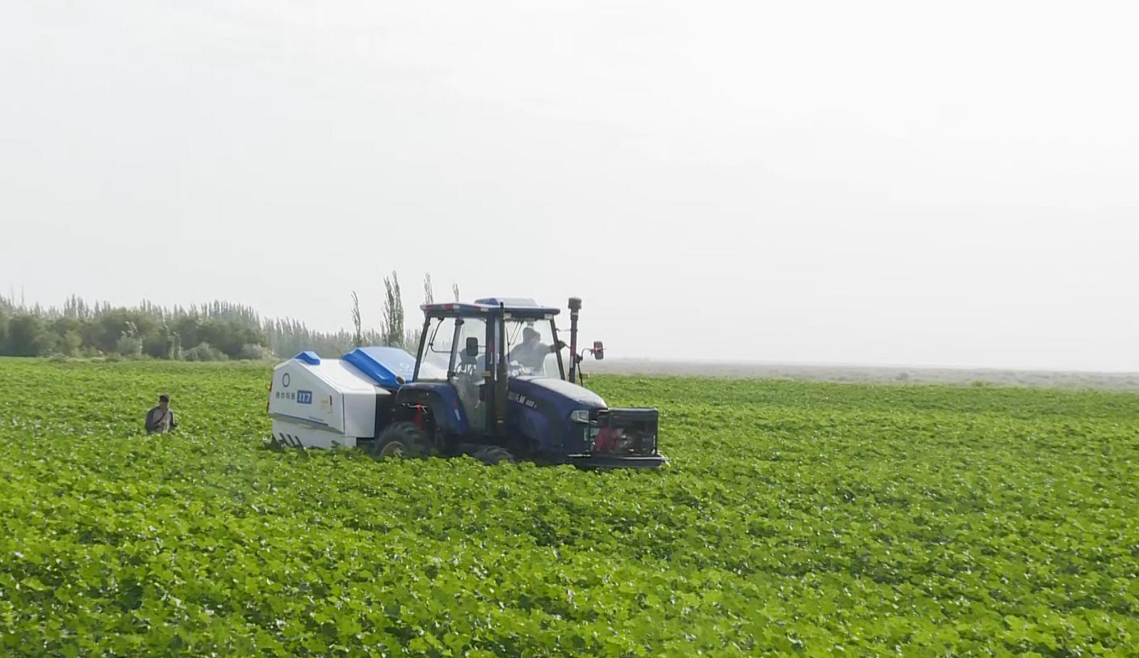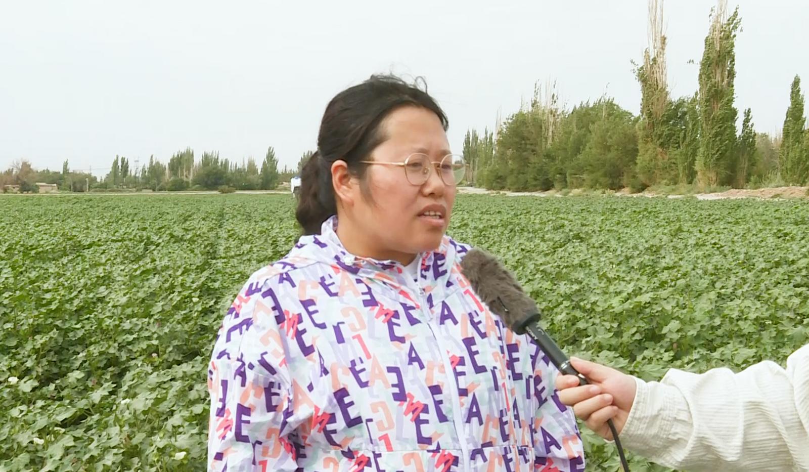 甘肃省农机推广总站技术人员刘鹏霞说:“目前棉花种植已经实现了全程机械化作业,但是打顶环节还是以化控为主。今天开展三种模式--机械打顶、人工打顶和化控打顶的对比试验,目的是探究机械打顶、人工打顶与化控打顶对棉花品质和产量的影响。如果机械打顶能够成功的话,我们就能减少药剂用量,减少化学污染,用机械打顶替代化控打顶。”