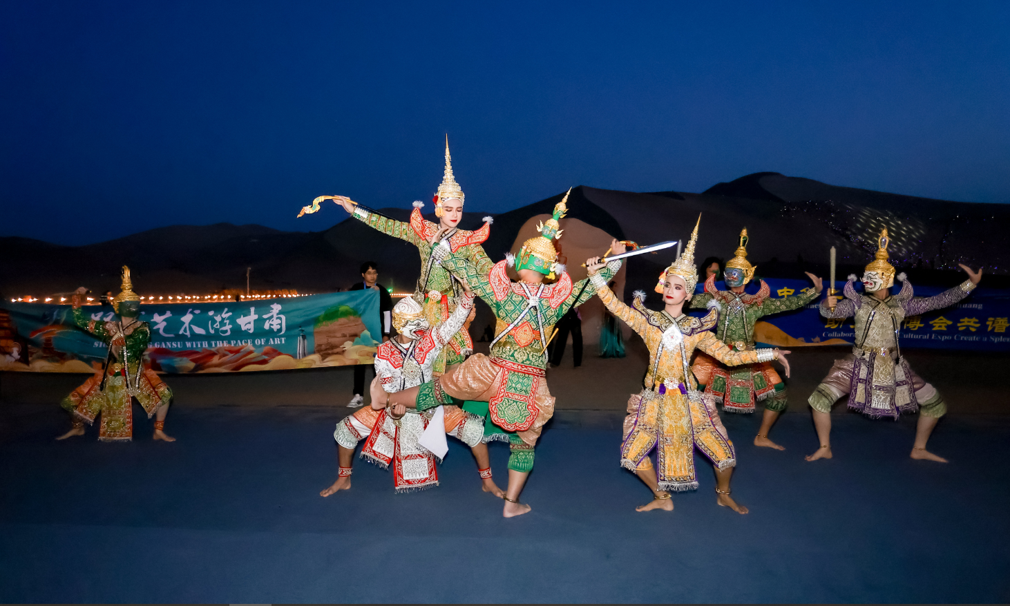 本届文博会也是一次艺术交流的盛会。来自中国和美国、泰国、匈牙利、韩国等5个国家的13个文艺团体共同带来《丝路回响:过去、现在、未来音乐会》《敦煌丝绸之路音乐会》、“相约敦煌”国际文化交流演出等3场大型文艺演出和2场进景区文艺快闪活动,再现了多元文化在敦煌交流交汇交融的盛况,奏响了弘扬丝路精神、增进民心相通的和美乐章。