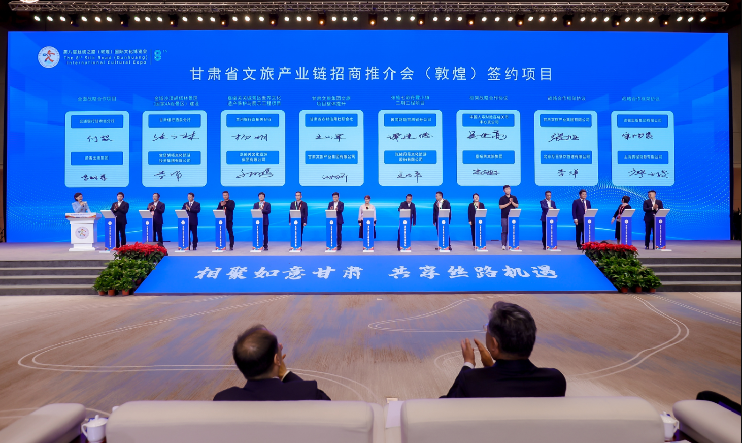 在赋能地方发展与产业合作上,本届文博会成果显著。文博会期间举办的招商推介大会吸引260多家知名企业参与,最终达成签约及授信项目74个,总金额达162.69亿元,涵盖文旅基础设施建设、文化创意产业开发、生态旅游合作等多个领域,为甘肃文旅产业高质量发展注入强劲动力。