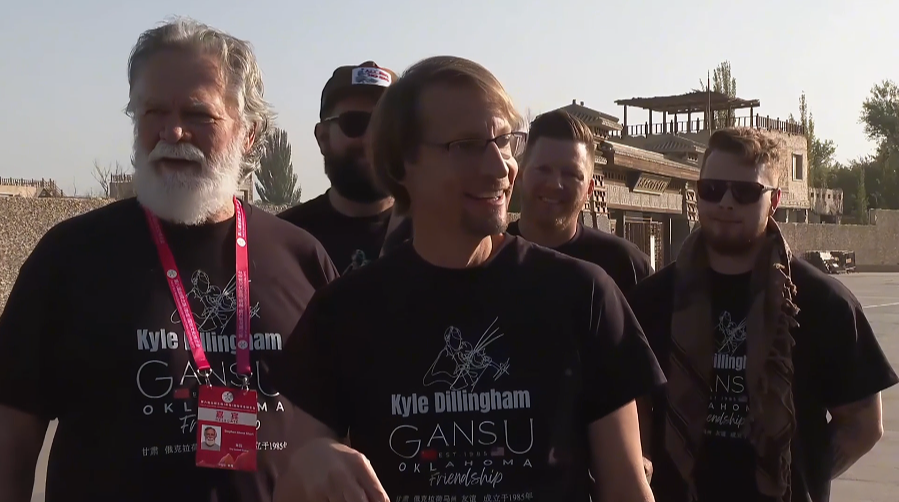 美国俄克拉何马州“马掌路”乐队领队凯尔·迪林汉姆说:“就像这个神奇的地方,你知道在美国迪士尼是世界上最快乐的地方,但我认为敦煌是世界上最快乐地方,来到这里天气很好,人们友好好客,一切都很亲切。”