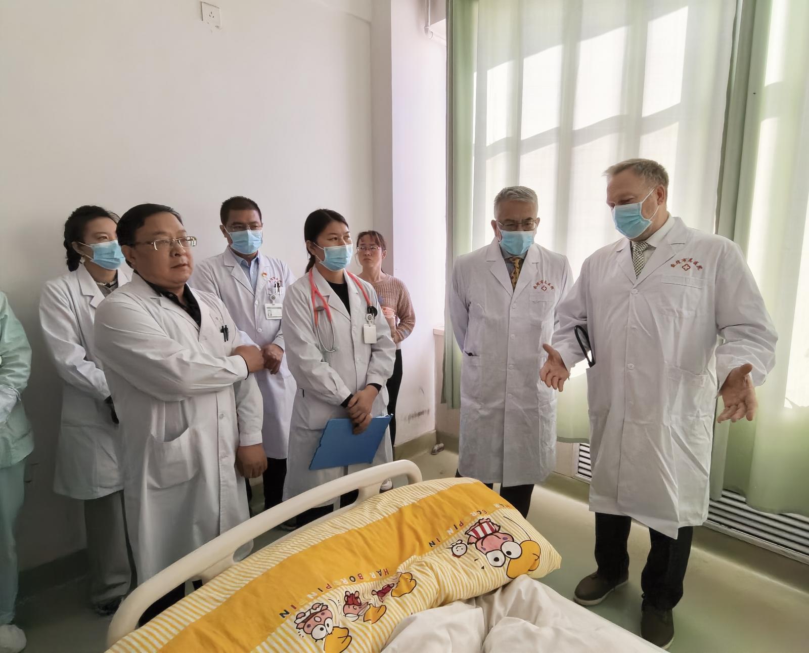 学术研讨会后,加拿大专家团队深入敦煌市总医院心血管内科病房,开展了教学查房与病例指导。随后,10余名患者还相继向专家一行叙述自己身体状况,咨询诊疗方案。