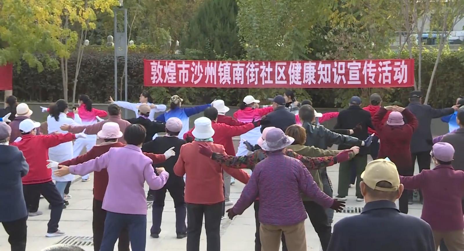 活动现场,敦煌市医疗保障局的工作人员化身 “宣传员” 与 “指导员”,面对面向居民讲解2026年度医保缴费标准、缴费渠道及相关优惠政策。医护人员开展了健康讲座普及秋冬疾病预防知识,提供义诊与诊疗建议,并带领居民学习八段锦,倡导科学健身。