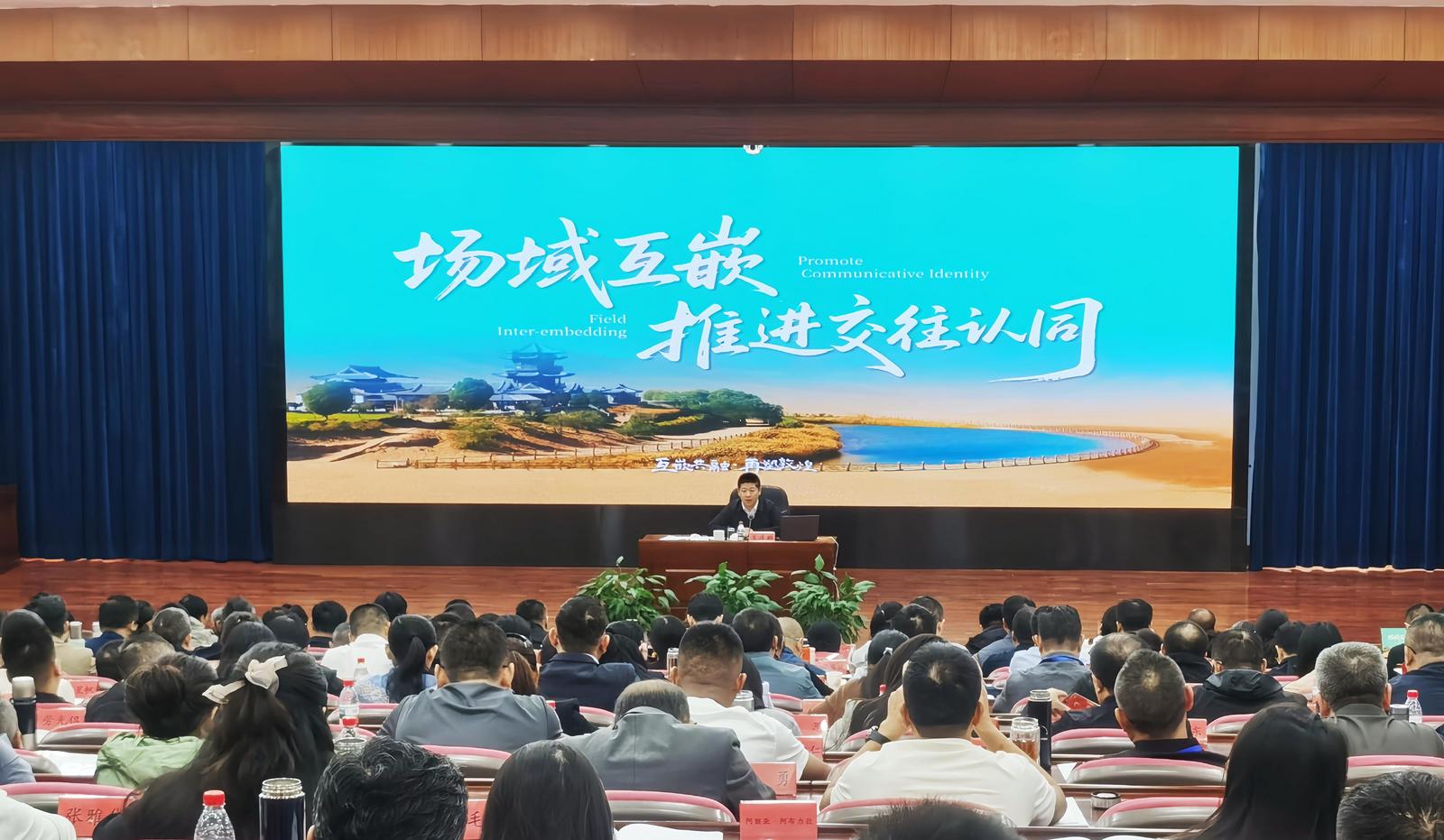 培训班上,王彦群立足敦煌文化根脉、服务民族团结大局的初步探索,以“互嵌共融,再塑敦煌”为主题,从场域互嵌、推进交往认同,体系互嵌、推进交流增信,价值互嵌、推进交融传美等三个方面,与大家分享了敦煌市将旅游业高质量发展与促进各民族“三交”深度融合的生动实践。