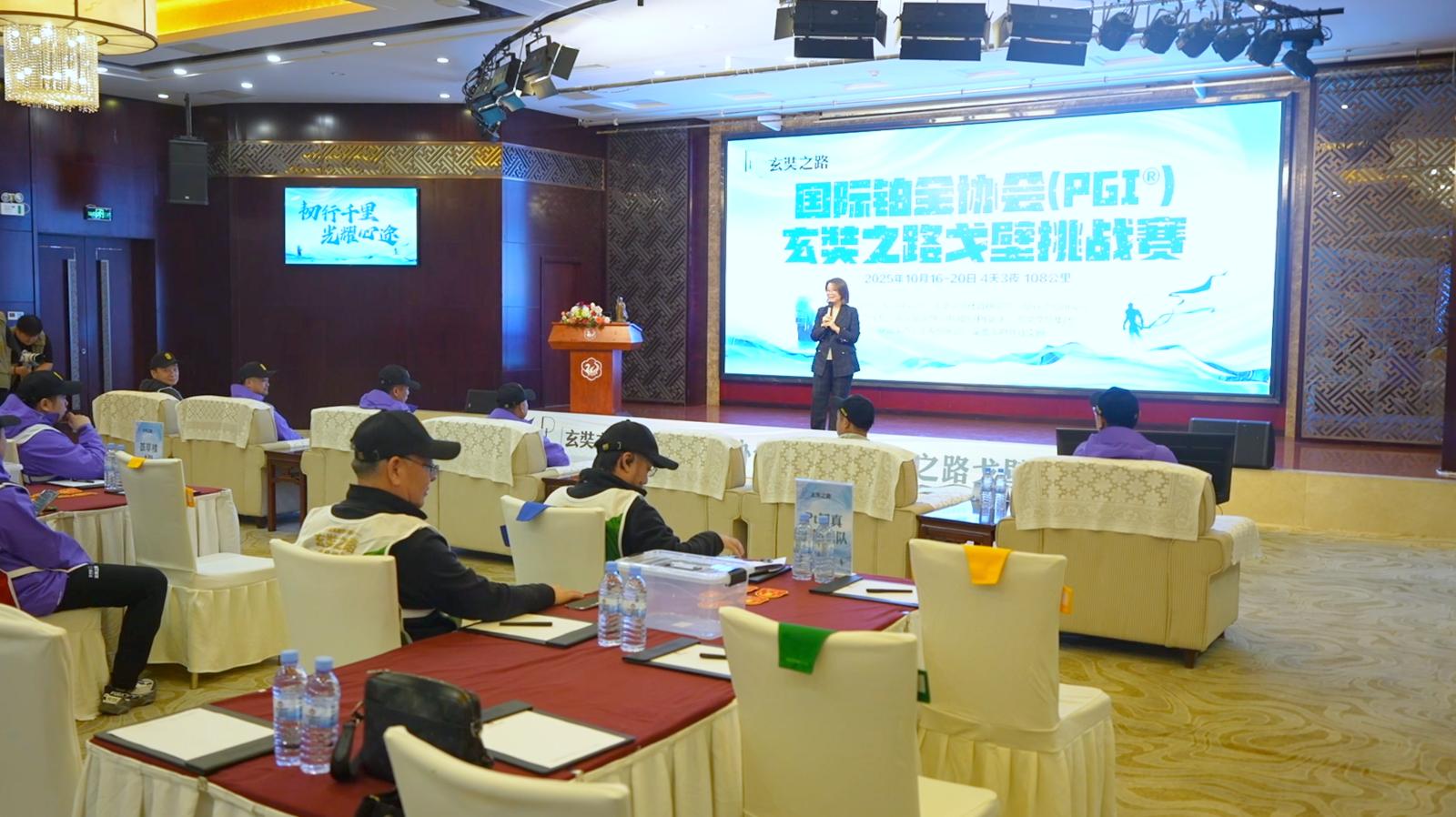 10月16日晚,“2025国际铂金协会X荟萃楼珠宝玄奘之路戈壁挑战赛赛”在敦煌举行点将出征仪式,三支参赛队伍依次登台接受“点将”,吹响戈壁挑战征程的号角。据了解,10月16日至20日,来自荟萃楼珠宝集团的30余位股东和管理团队参赛者将穿越戈壁古道、草原地貌,在108公里徒步中感悟丝路历史,重温玄奘精神。