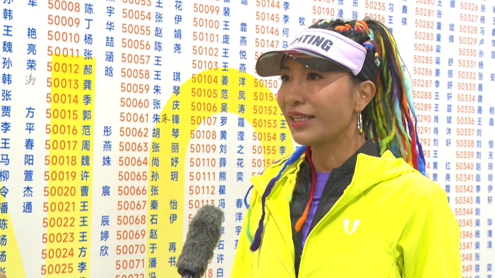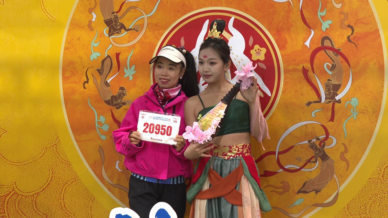 参赛运动员张娟说:“我是第一次来敦煌参赛,昨天我来到这里去看了赛道,我们的赛道非常漂亮,整个赛道是金黄色的,非常非常期待。我发现敦煌半马领物现场还有一个非常大的亮点,就是首次开创了选手在姓名墙上找自己的参赛号码,并且把自己的名字补全,这真的是首创,大大的点赞。”
