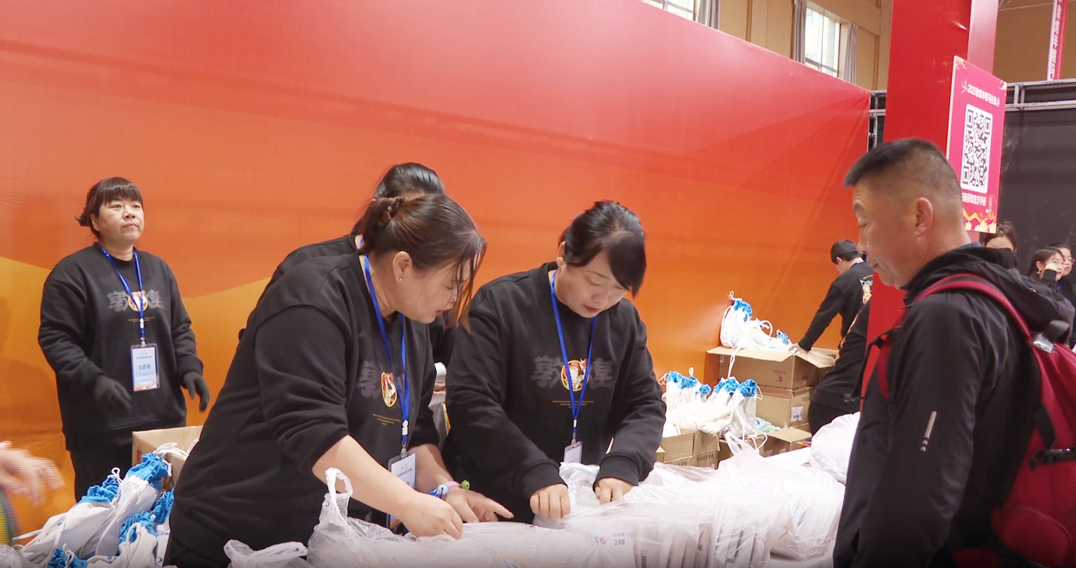 记者在领物现场看到,志愿者们身着统一特色服装,手腕佩戴醒目的彩带手环,他们分工明确,有的核对信息,有的分发赛包,并耐心解答选手提出的每一个问题,现场秩序井然。
