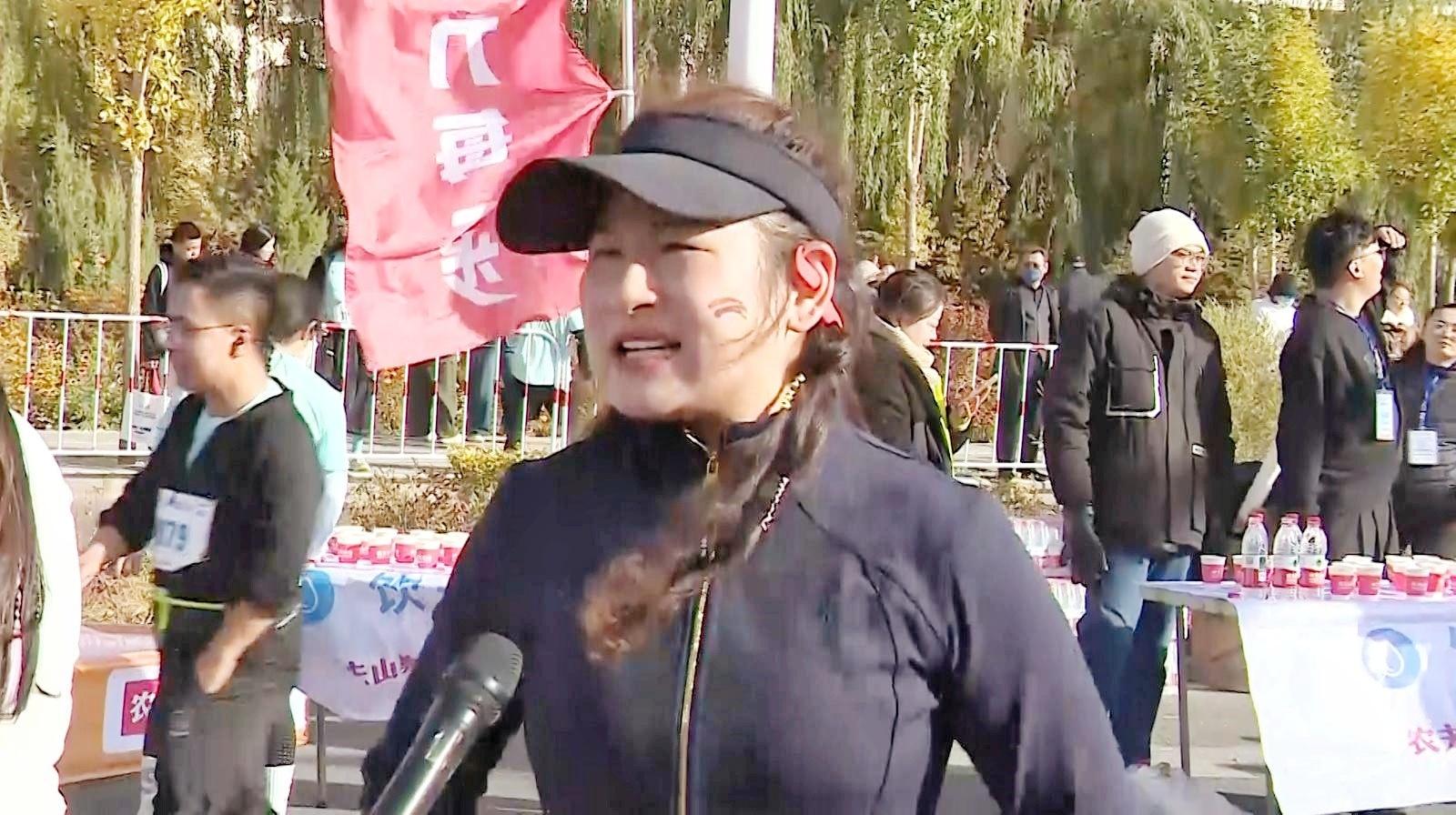 2025敦煌半程马拉松选手丁静说:“我感觉敦煌的朋友们真的太热情了,路上还有好多表演节目的,有舞狮,有舞龙,我觉得敦煌人民太好了。这个运动又能强身健体,又能欣赏鸣沙山月牙泉的风景,很棒。”