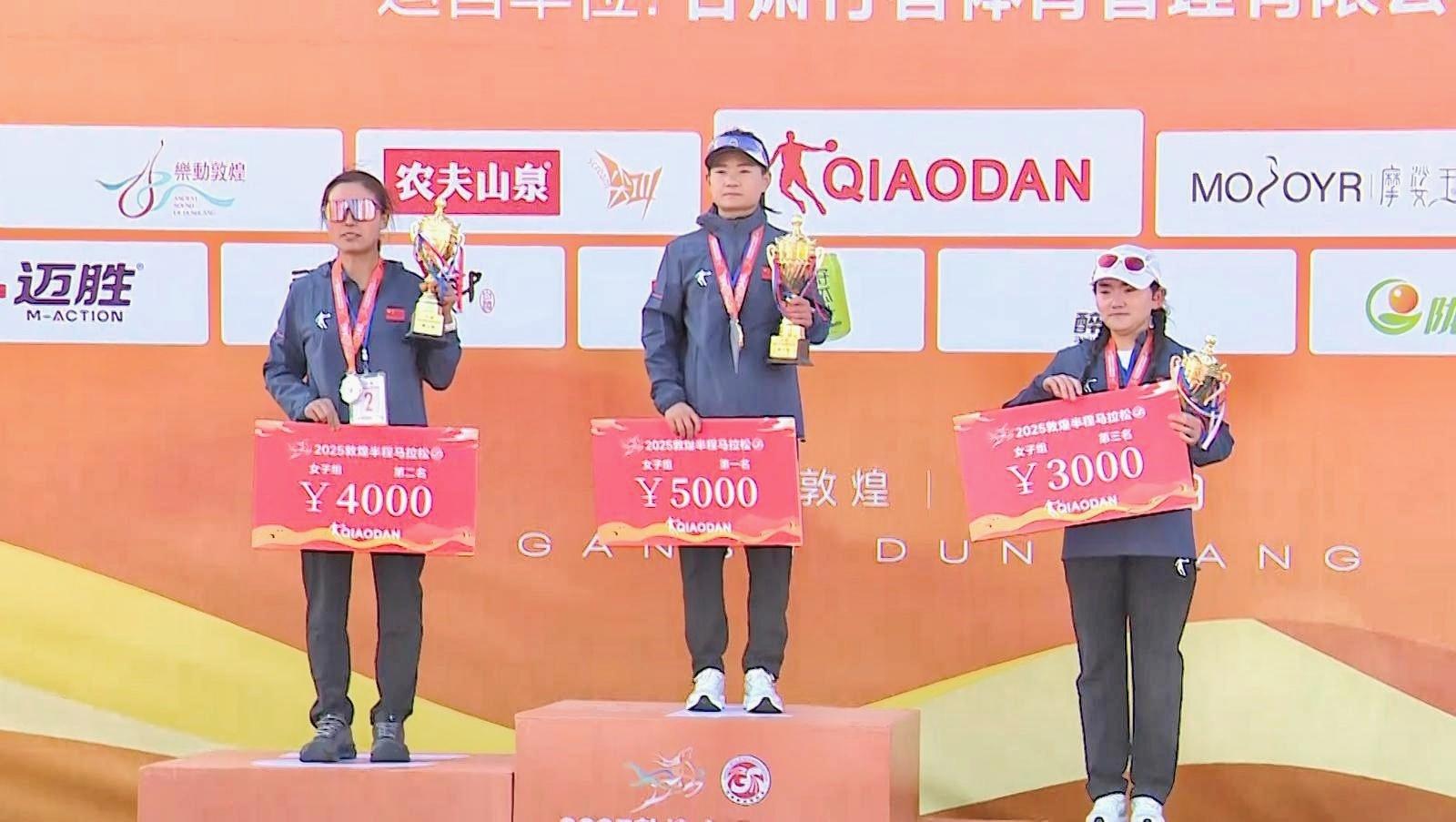 2025敦煌半程马拉松女子组项目冠军肖晶说:“参加半程马拉松并且获得了冠军,感觉非常荣幸。敦煌的市民也非常热情,一大早就在路边,给我们加油呐喊,我跑起来也非常有劲、非常兴奋。赛道设置穿越了景区,非常有体验感,跑完也非常开心。服务保障是按照最高规格去举办的,不管是赛前、赛中、赛后的保障,都给我们选手提供了很大的便利。”