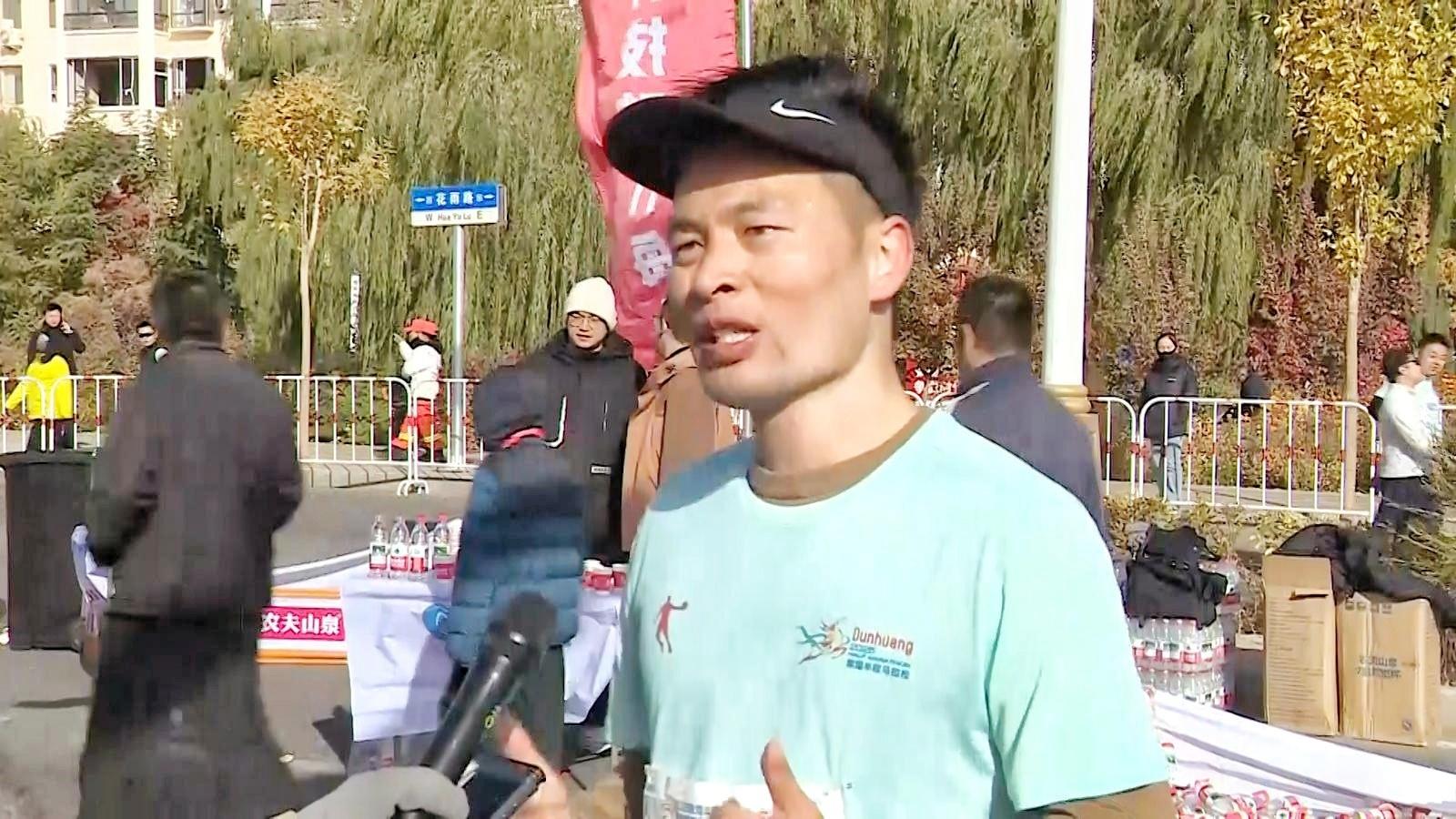 2025敦煌半程马拉松选手肖勇说:“我觉得敦煌政府每个环节都安排的非常到位,让我跑的很轻松,医疗还有补给站都做得非常到位,环境也非常美。”