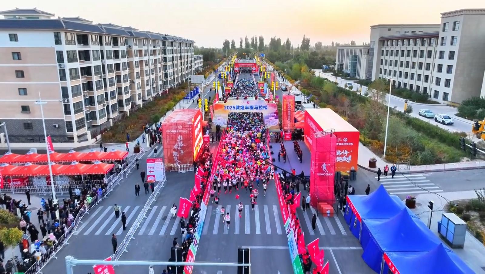 10月19日的敦煌,朝阳为丝路古城镀上金边。花雨中路与金山南路丁字路口的起跑拱门下,随着一声清脆鸣枪,敦煌半程马拉松、敦煌城市“鹿”跑挑战赛正式开跑。21公里的半程赛道与5公里的“鹿”跑赛道上,奔跑的身影与千年人文景观交相辉映,谱写出一曲运动与文明的交响。