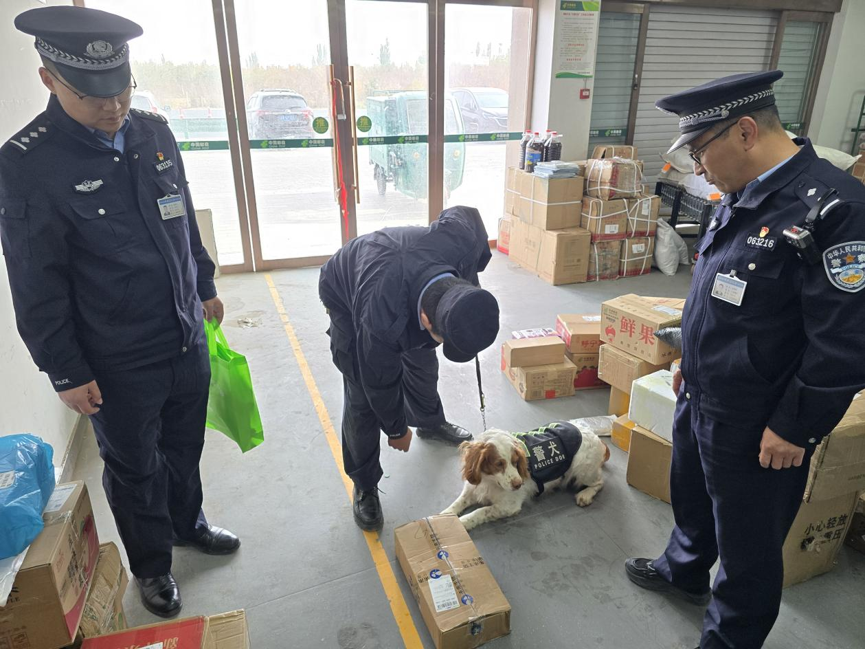 以“嗅”护安 警犬上阵——敦煌市公安局转渠口派出所开展寄递物流禁毒专项检查