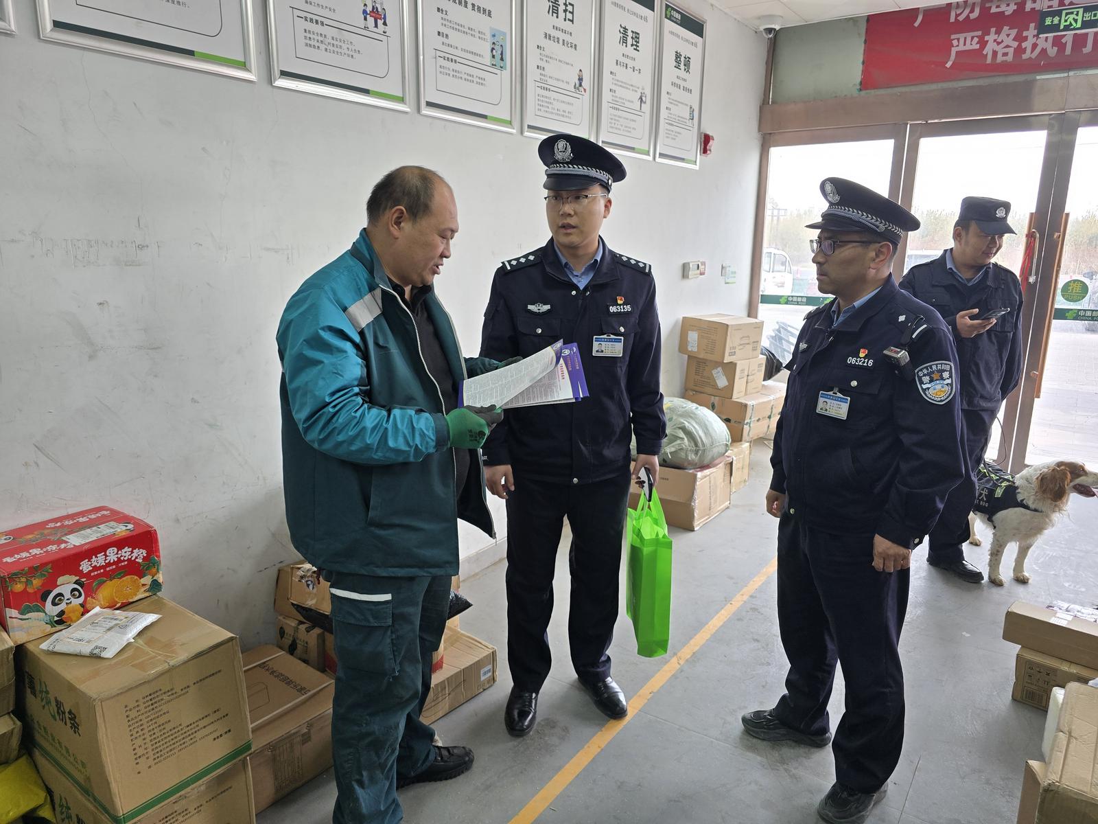 为严防毒品通过寄递渠道流通,筑牢物流寄递安全防线,近日,敦煌市公安局转渠口派出所联合市局禁毒大队、警犬技术大队,利用专业警犬技术力量,对辖区内寄递物流网点开展禁毒专项检查行动,让“嗅觉尖兵”助力织密禁毒防护网。