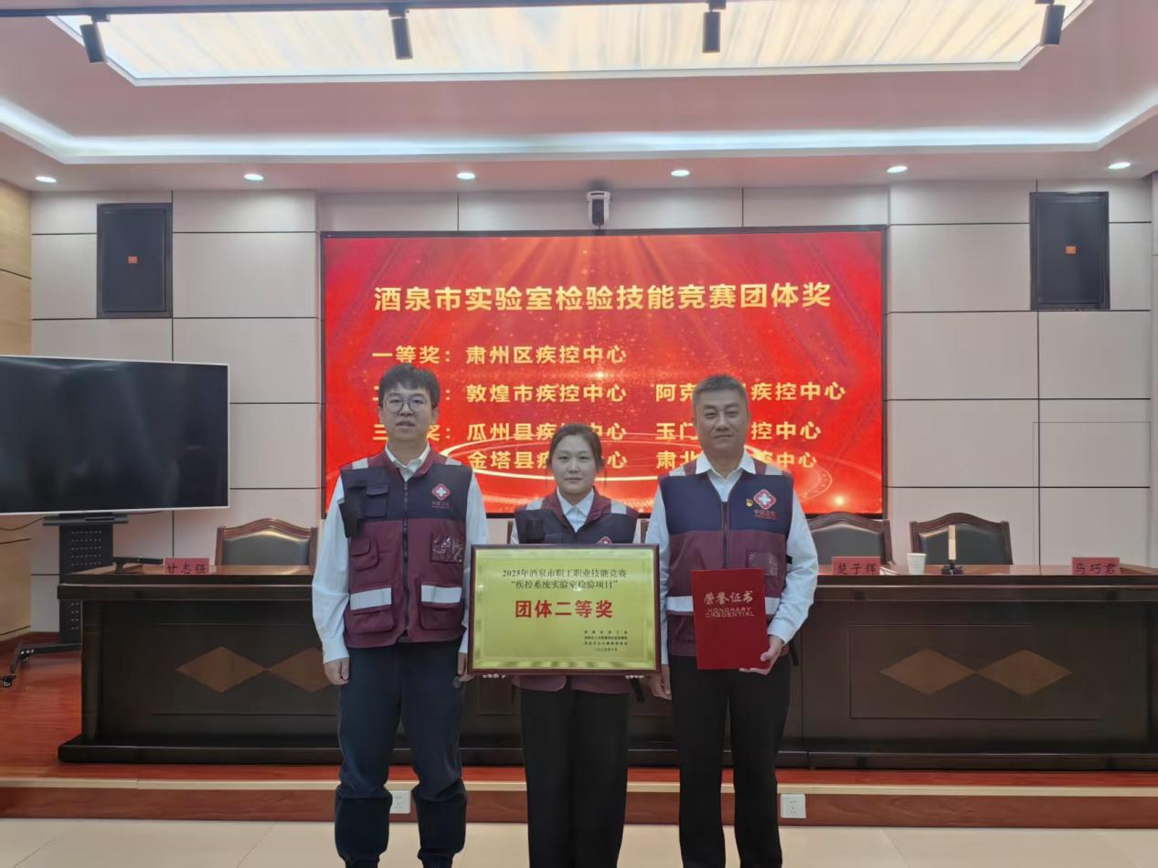 10月21日,在酒泉市人社局、总工会联合主办,酒泉市卫生健康委承办的2025年酒泉市疾控系统实验室检验技能竞赛中,敦煌市疾控中心代表队喜获团体“二等奖”。