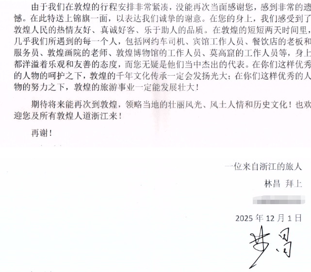 一面锦旗,一封书信!敦煌的 “人文温度”温暖浙江游客