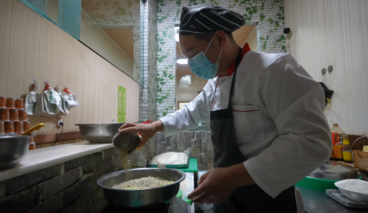 江海早餐店经营者李江海说:“早晨从凌晨三点开始,现在是淡季,旺季的话是一点就要起来做,早晨起来是要熬豆浆、稀饭,面都是早晨起来现和现做的,包括馅料都是当天早晨起来拌的。”