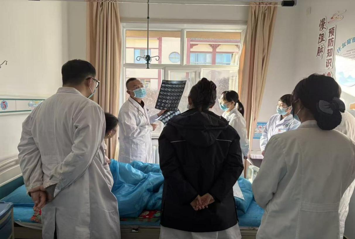 在临床查房环节,敦煌市总医院副院长深入社区分院病房,详细查看患者的病历资料,结合患者症状、体征及检查结果,逐一分析病情并指导诊疗方案调整。针对老年慢性支气管炎、肺炎、哮喘等高发疾病,专家不仅讲解了个体化治疗要点,还向社区分院医护人员传授了病情观察、并发症预防等实用技巧,帮助基层医护人员提升临床判断和处置能力。