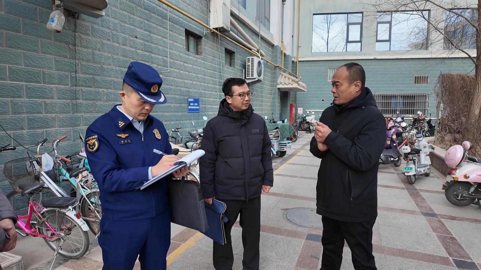 检查过程中,检查组重点对酒店高层建筑的消防控制室、外墙保温材料燃烧性能及防护层完整性、灭火器配备、火灾自动报警系统等关键环节进行细致排查。此外,消防员还深入居民家中,为他们讲解消防安全知识。针对小区院内飞线充电、楼道内杂物违规占用消防通道等行为,检查组当场下达整改通知书,责令其立刻进行整改,为群众营造安全有序的生活环境。