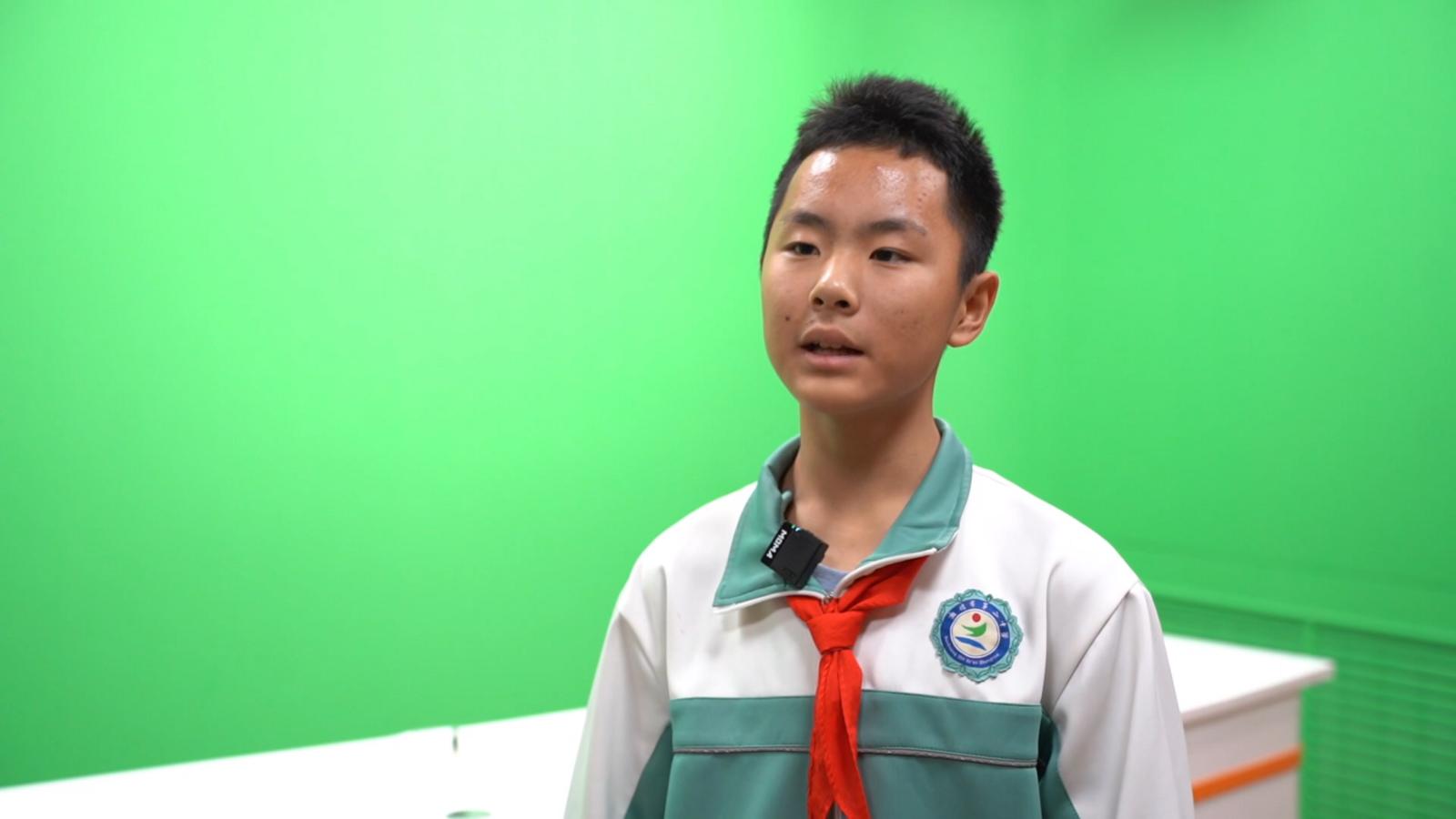 敦煌二中学生李泽逸说:“因为我的父母比较注重培养我的口才能力,从小就给我报了口才班。小学期间也一直在学习,后来市上、省上各种各样的比赛参加过。而且都获得了一些成绩,相对来说,到初中以后在这一方面自己也是比较自信的,于是就选择了参加学校的电视台。成为主持人之后,对我的临场应变能力,包括像社交能力,还有在日常的人际交往中,对我的社交能力,都有了很大的提升。”