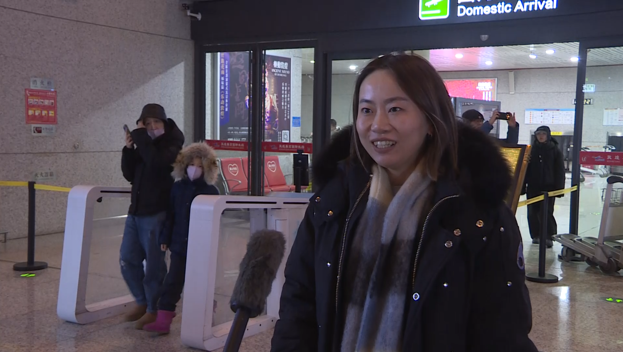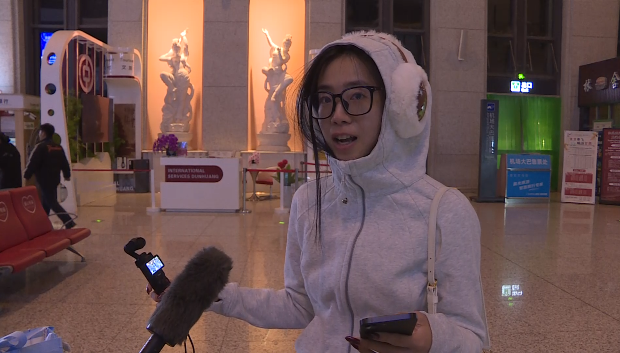 上海游客谢春晓说:“很开心,很激动,刚下飞机就看见烟火,作为2026年的第一批游客,我很开心,也来感受一下大西北的历史文化。”