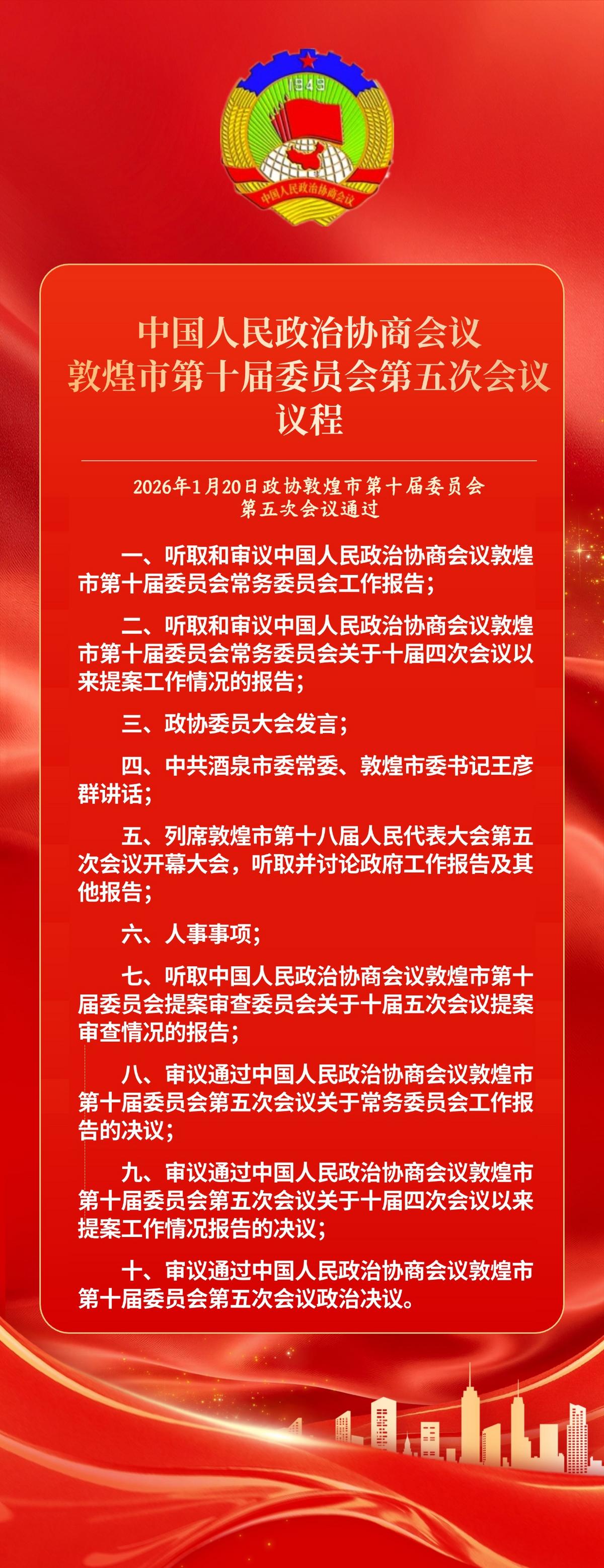 【两会时间】海报 | 政协敦煌市第十届委员会第五次会议议程