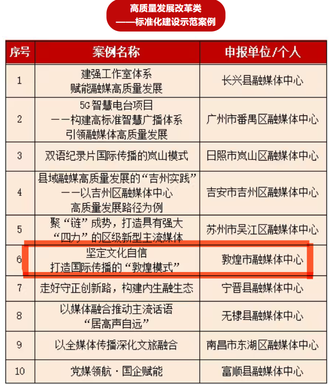 优秀!敦煌融媒国际传播案例获评全国“标准化建设示范案例”