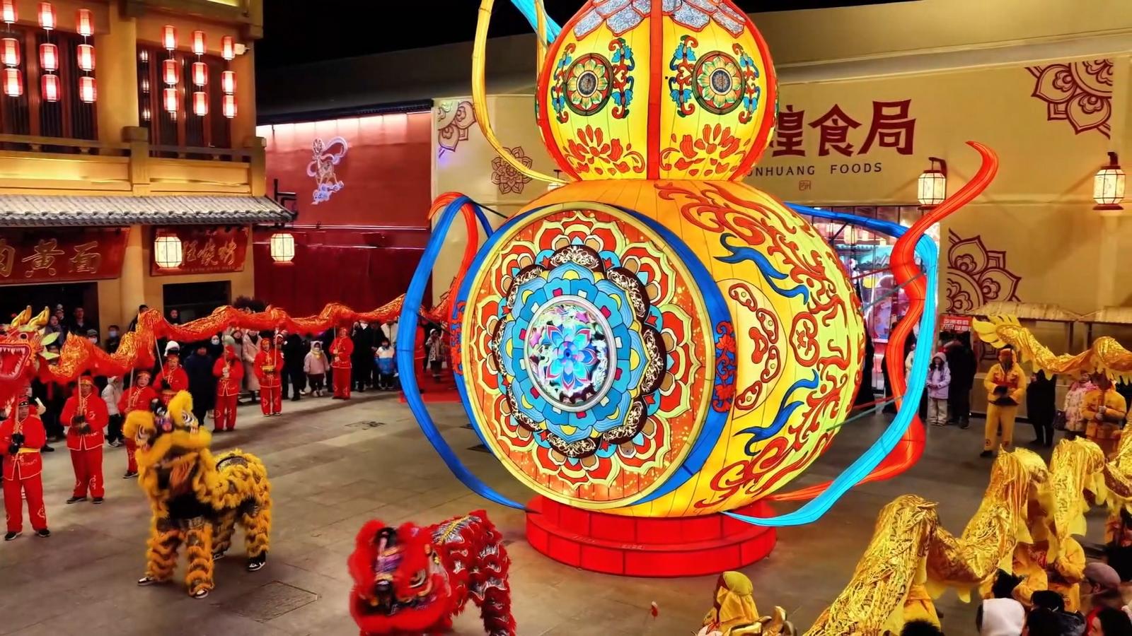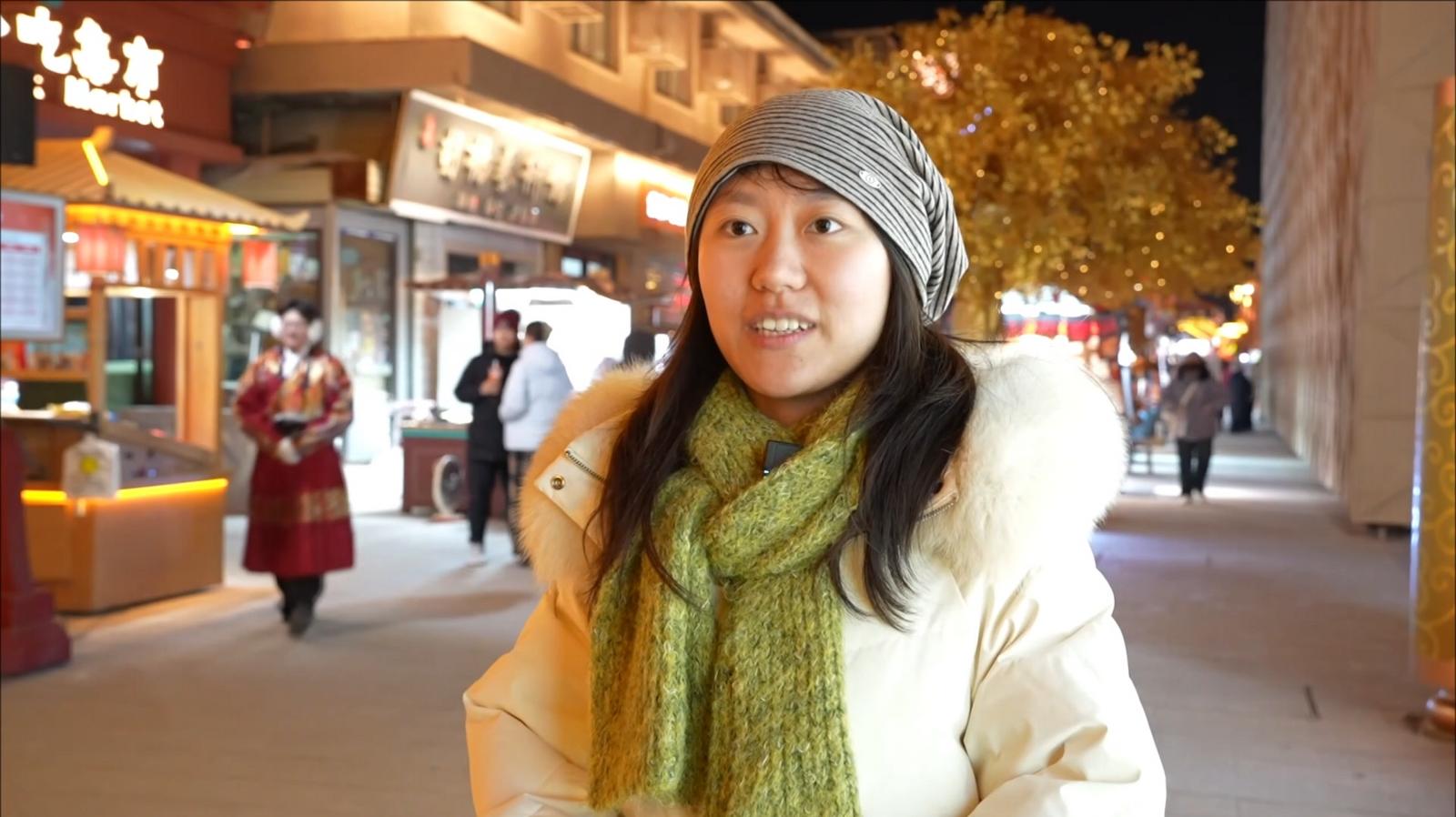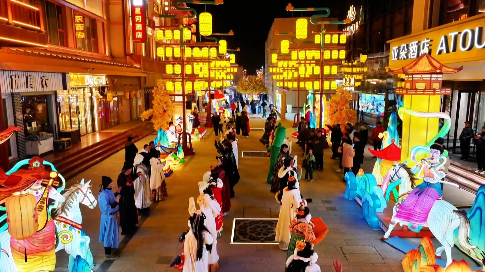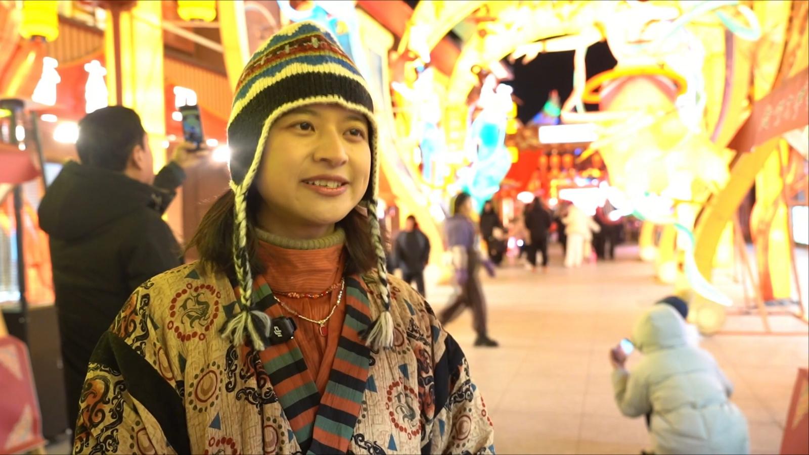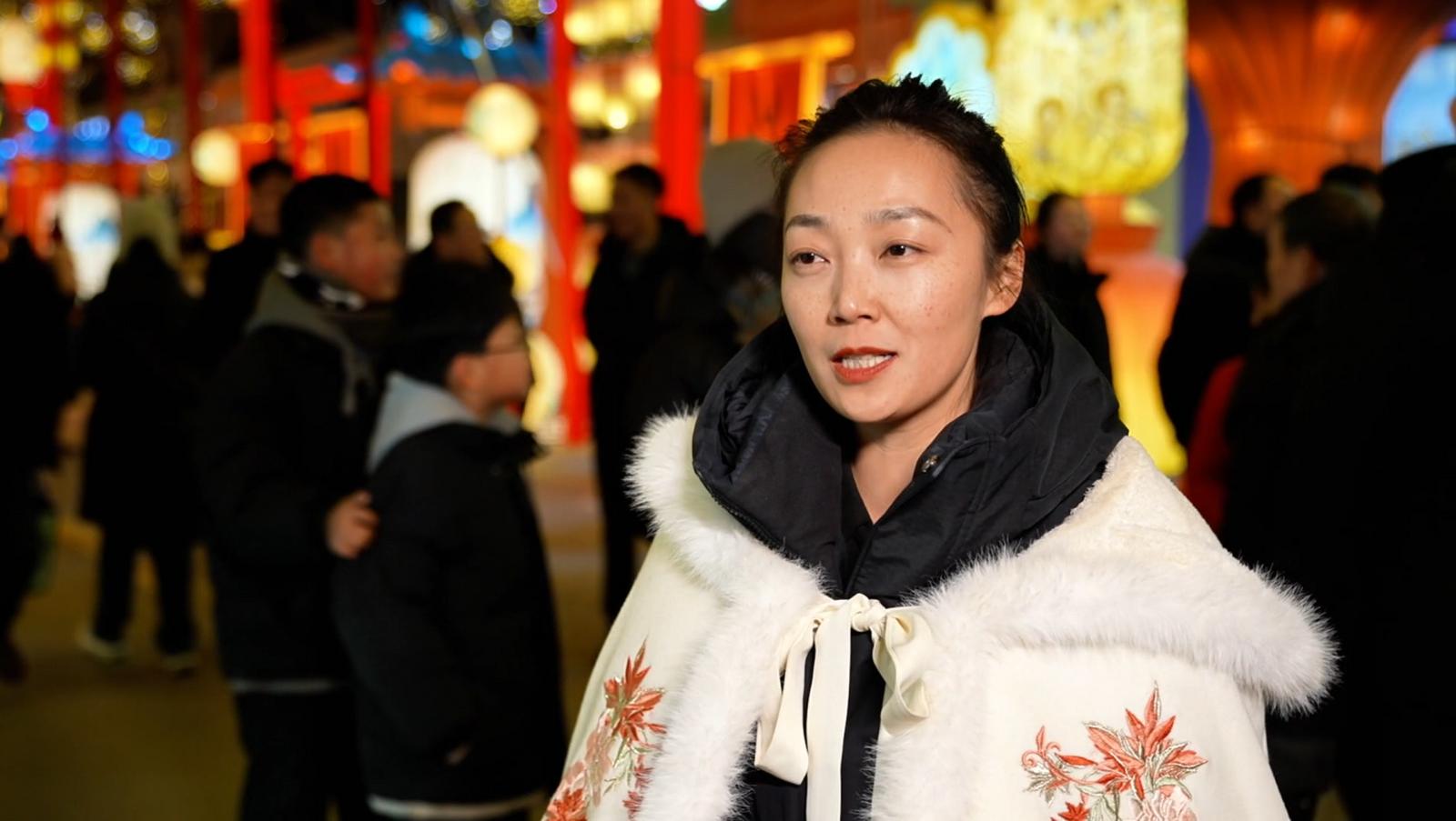 上海游客杨雯如说:“我感到整个灯会的布置非常精致好看,我在那边看到的很多灯,是十二生肖的形状,融合了中国的传统文化,还有莫高窟里面的一些动物的造型,我觉得就是把这个夜市点亮得非常出彩。”