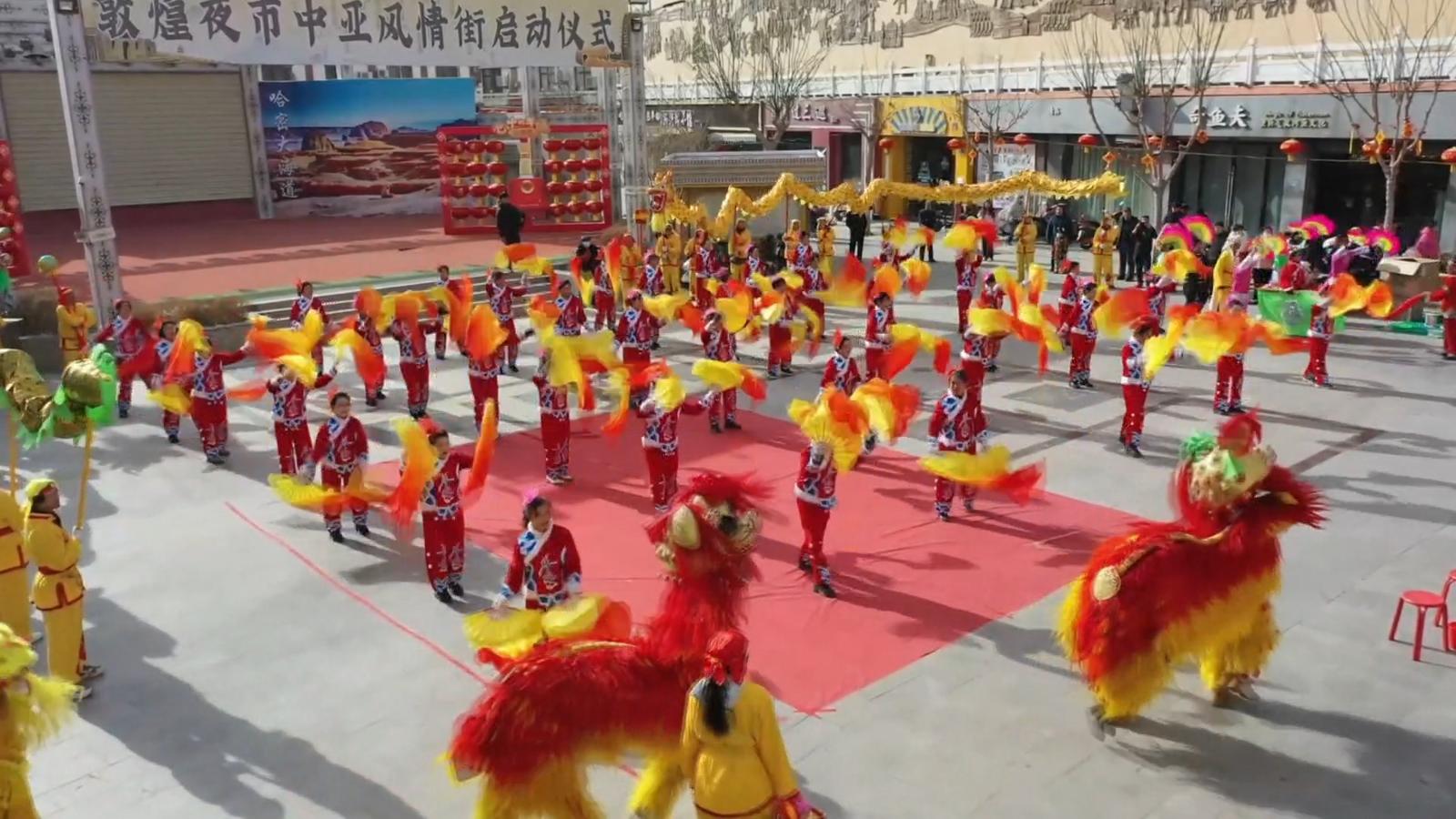 市民金子明说:“每年就盼着看社火,看着龙狮飞舞、彩扇飘扬,就知道年真的来了。孩子们追着队伍跑,大人们笑着拍照,这就是咱敦煌的年味儿。”