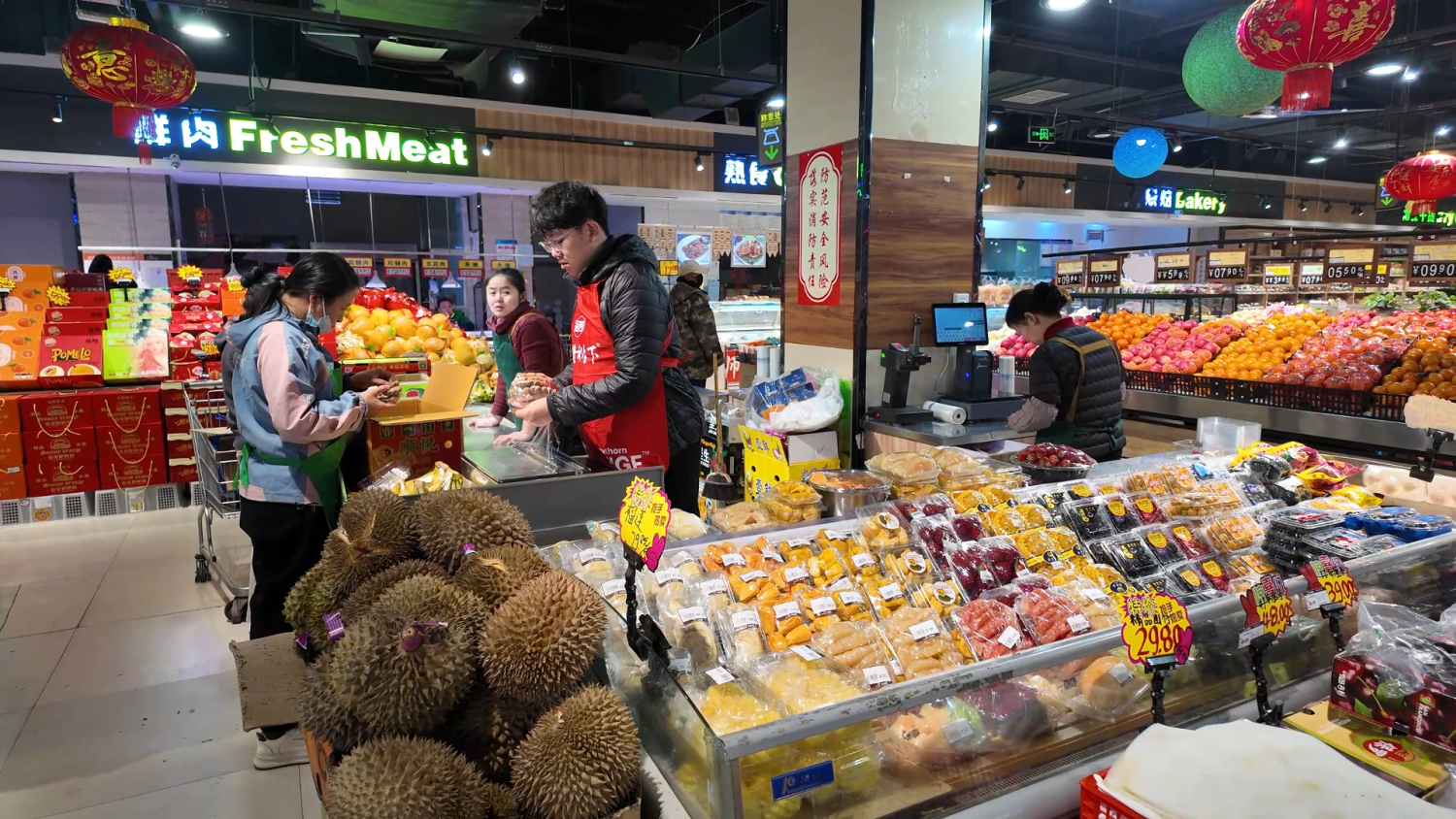 敦煌市民白瑜说:“今天我和家人一起到超市来购置一些年货,超市里的物品种类也很多,过年的氛围也很足,准备多买一点回去过年。在这里也提前祝大家新年快乐,身体健康。”