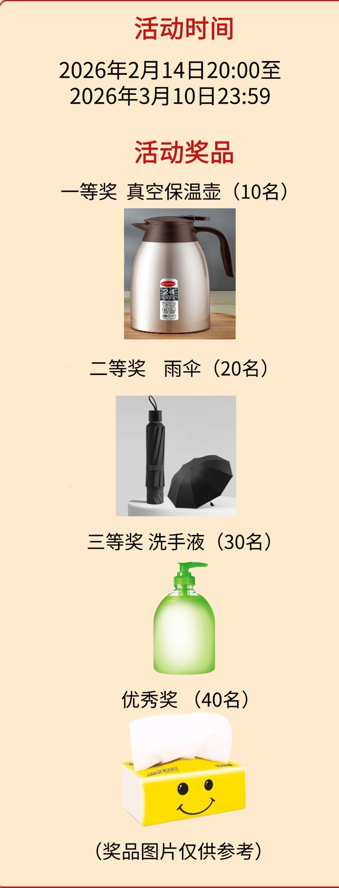 1.本次有奖答题活动范围为敦煌市内,随机抽取题库中的10道题目进行作答,答题成绩100分即答对10道题目可以获得抽奖机会。此次活动每人有1次中奖机会。