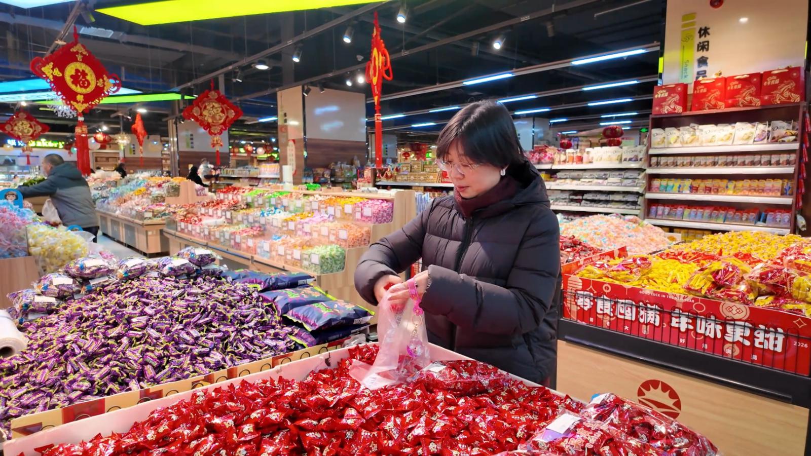 在外地工作的敦煌人年莉说:“平时在外忙工作,也很少给家里买什么东西,今年过年回家,带着孩子来超市,给家人置办一些年货,看到家人才真正感觉到新年来了。”