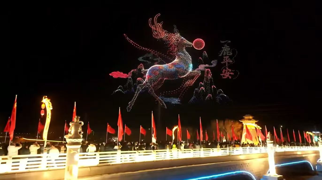 市民王祎祺说:“今天和朋友一起来到这里看无人机灯秀,非常有年味,也非常好玩,灯秀也非常好看,周围人也特别多,年味也是十分浓郁。”