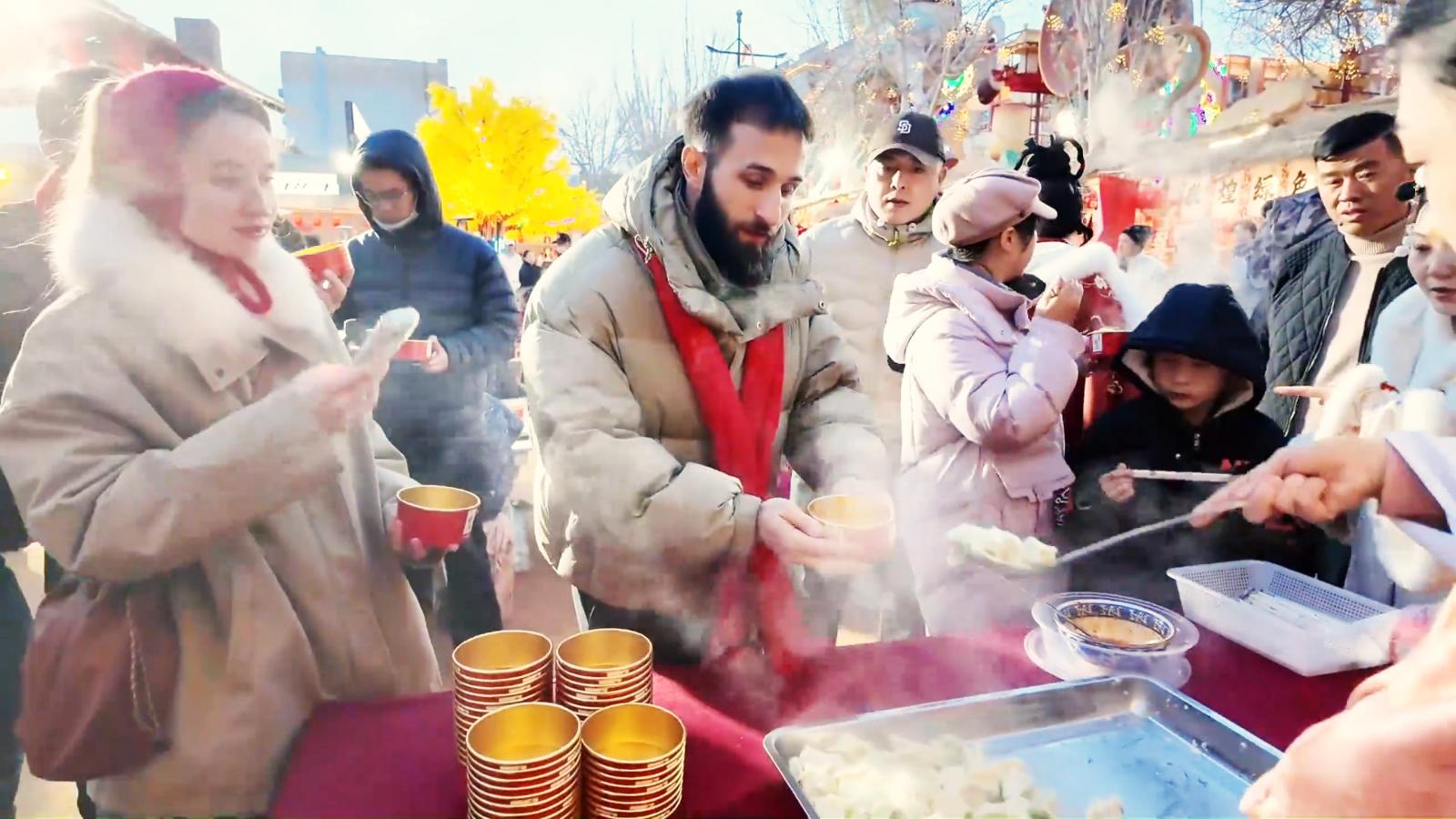 山东游客戚莉莉说:“非常高兴来到美丽的敦煌,感受敦煌文化,在这里品尝到了免费给我们游客提供的饺子,很有家的感觉。”