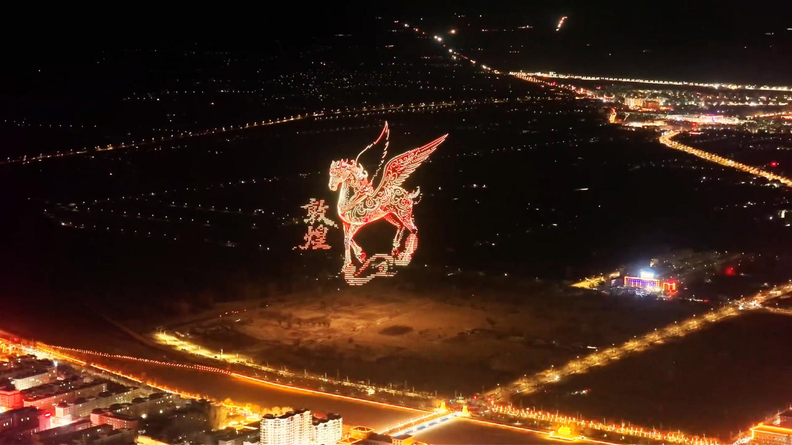 连续4天的无人机展演,点亮了新春敦煌的夜空,既让千年敦煌文化在科技赋能下焕发新生机、新活力,也为市民和游客带来了家门口的新春文娱新体验,进一步提升了敦煌这座丝路古城的活力与吸引力。