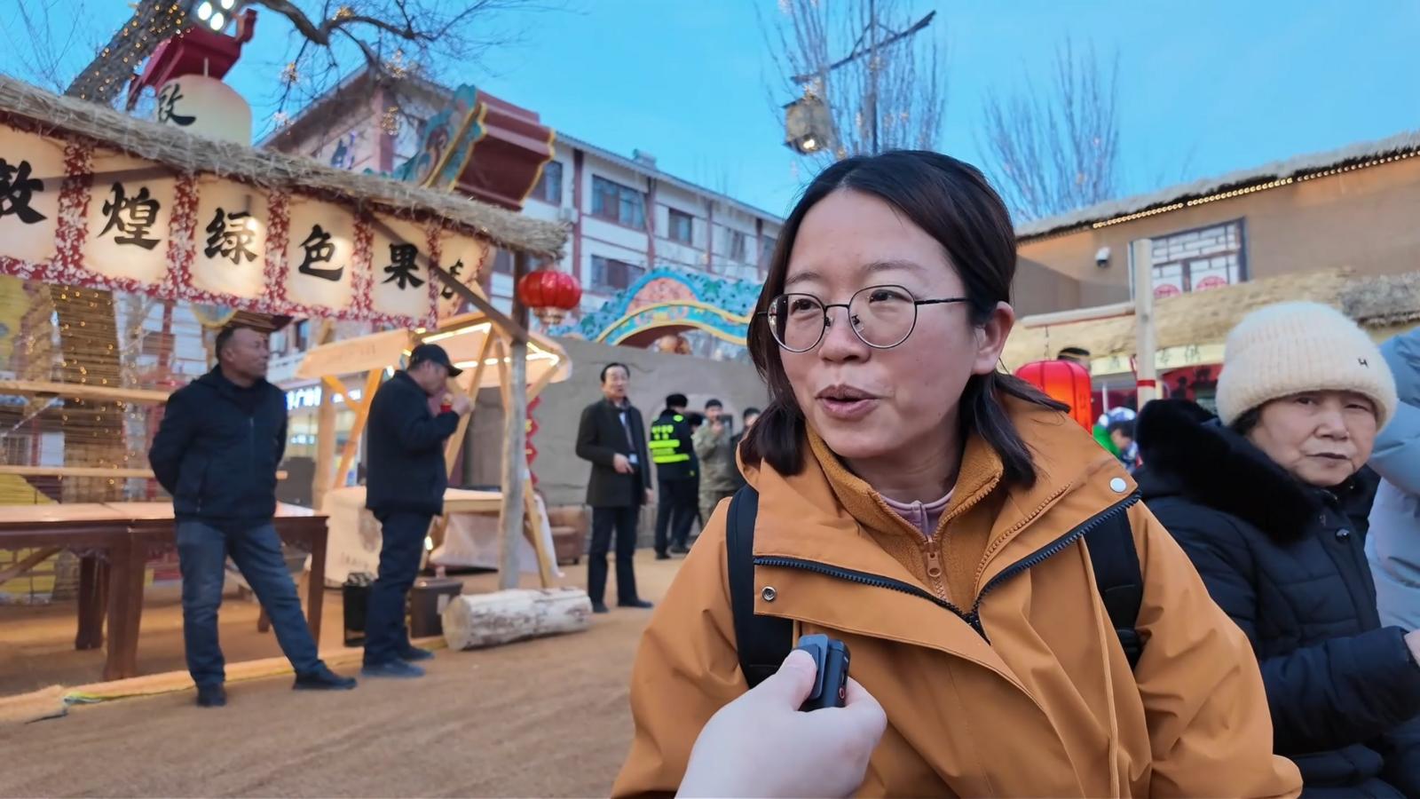 市民张思雨说:“敦煌大集既有小时候爱吃的老味道,也有文创产品,带着孩子来,既能买年货,也能感受过年的气氛,特别热闹。”