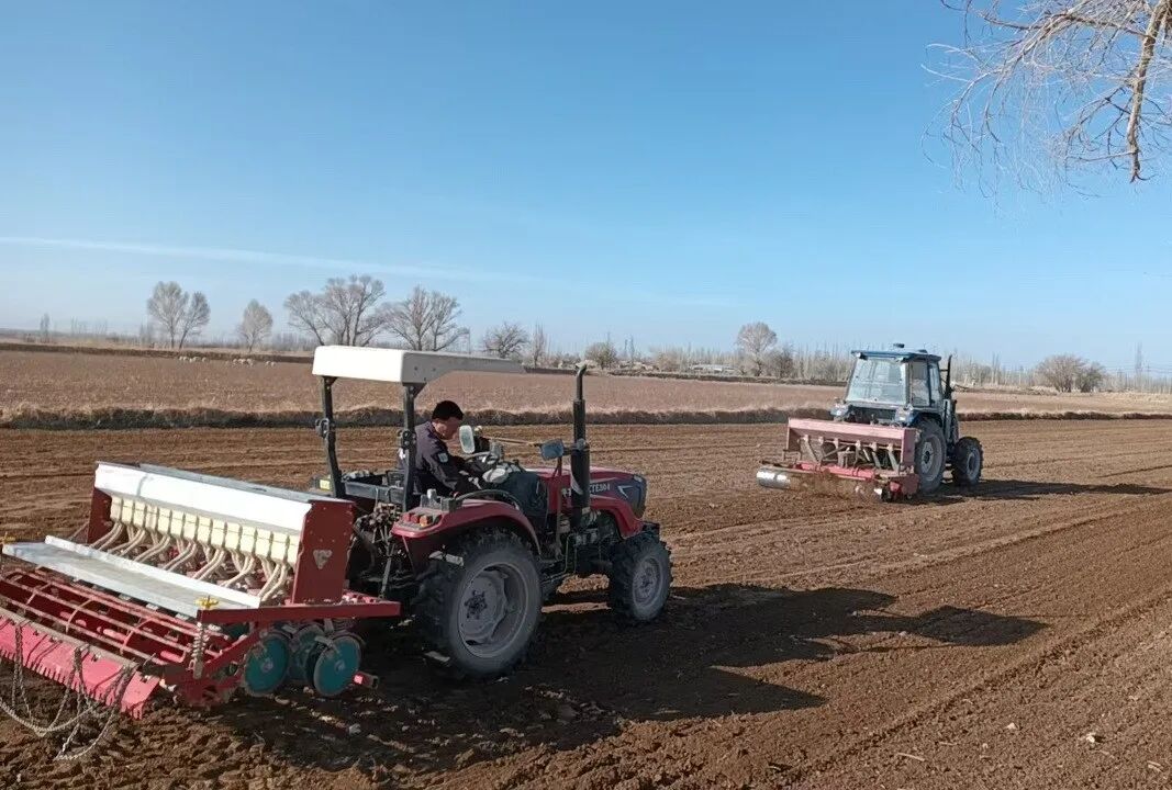 农时不等人,部署走在前。当前正值春耕农忙关键时期,粮食生产、温室大棚种植同步推进。深入田间地头,小麦播种、秸秆还田、平田整地等作业有序开展,农机穿梭田间、轰鸣声此起彼伏。农户抢抓农时,积极捡拾残膜、增施农家肥,结合不同地块墒情、土质制定个性化种植方案,截至目前,已完成小麦种植2071.82亩,露地豌豆种植120余亩。