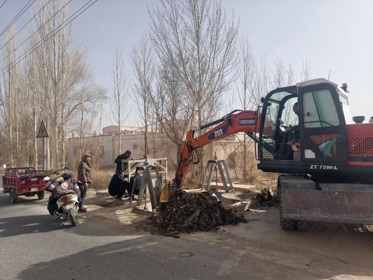 在敦煌市肃州镇各村的林带灌溉现场,村干部、党员群众及公益性岗位人员组成的管护队伍忙碌不停、干劲十足。大家分工协作、默契配合,有的弯腰清理林带内的杂草枯枝,有的俯身疏通堵塞的灌溉渠道,有的手持工具引水浇灌、巡查水情,每一道身影都饱含着护绿爱绿的责任与担当,全力确保辖区每一片林带、每一棵树木都能“喝足水、喝好水”,做到灌溉无死角、管护无盲区。
