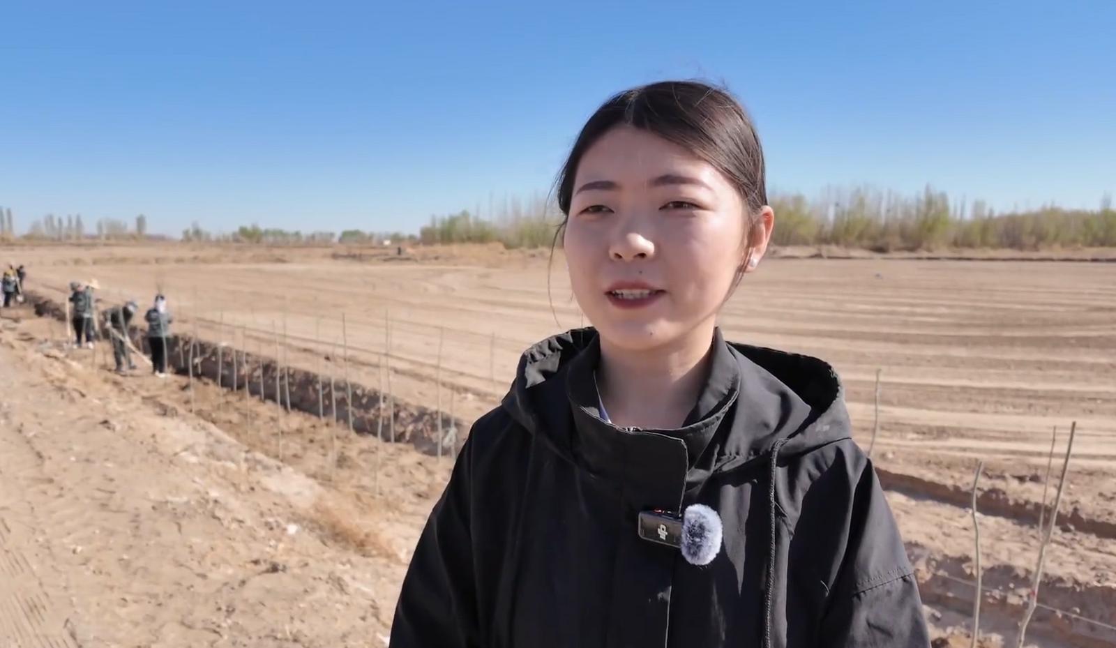 敦煌市郭家堡镇党建办公室干部杨蓉说:“作为一名乡镇干部,这是我上班以来,第一次参加集体植树活动。亲手种下树苗,让我心里非常有成就感,为全镇的生态环境建设作出自己的努力。”