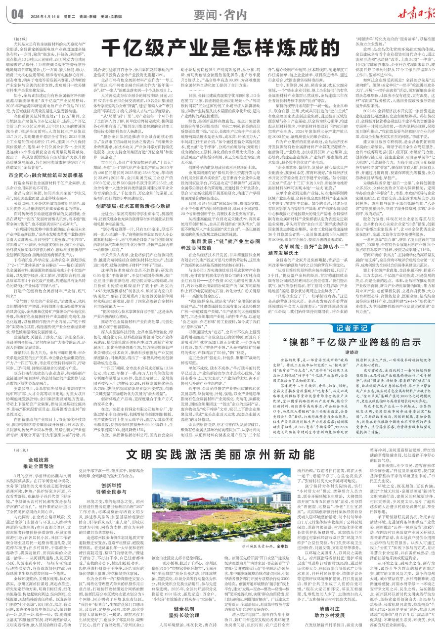 更可贵的是,金昌找到了一条可持续的转型路径:立足传统产业根基精耕细作、“吃干榨净”,通过“强龙头、补链条、聚集群”的“链式”发展,让冶炼副产品变身循环原料、单个企业聚合成产业生态,既实现有色金属新材料产业破千亿元、“金白兰武”集群产值近3000亿元的规模跃升,更达成绿色循环与高质量增长的双向奔赴。