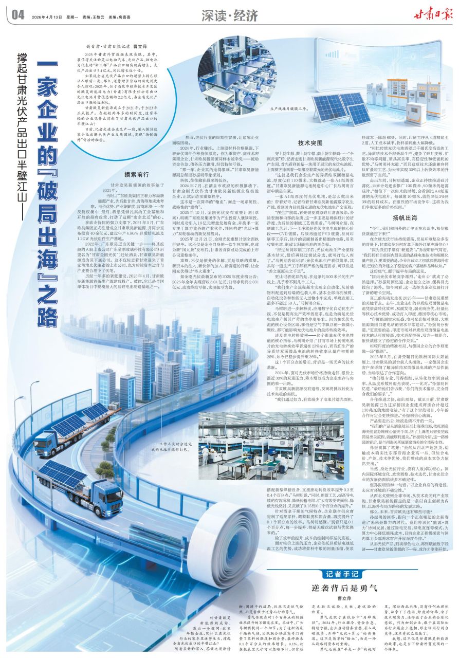 【深读·经济】撑起甘肃光伏产品出口半壁江山——一家企业的“破局出海”之路