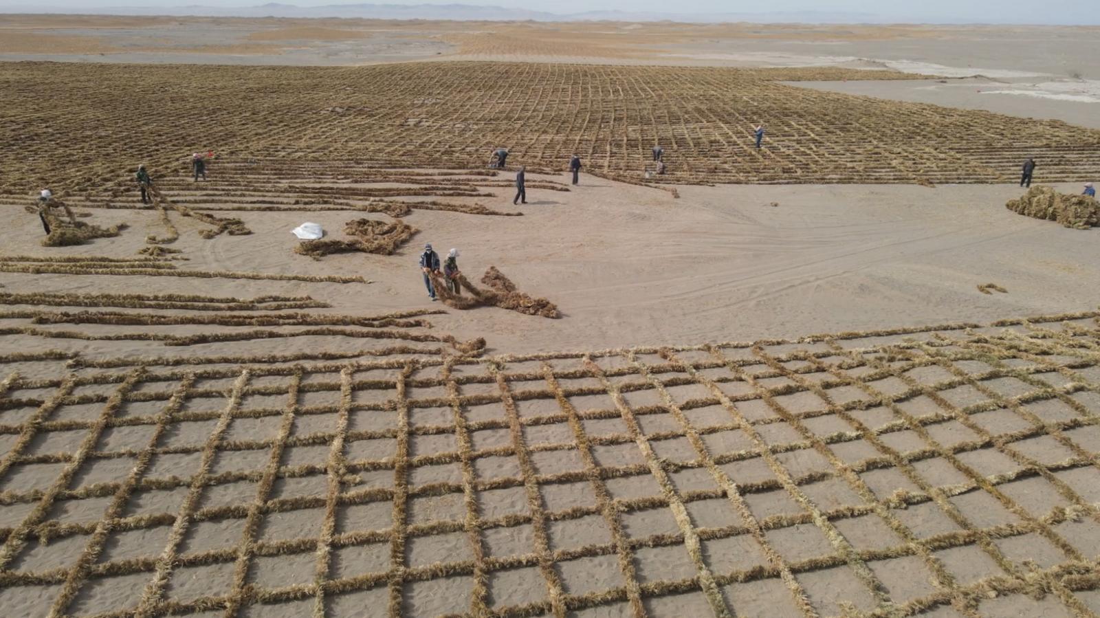 敦煌市林业技术推广中心副主任常娟说:“库姆塔格沙漠常年对敦煌绿洲形成侵蚀和威胁,我们在传统的防沙治沙模式上,积极引进宁夏刷状网绳式草方格技术,该项技术在防风固沙、降低成本和提升效率等方面有显著的优势。”