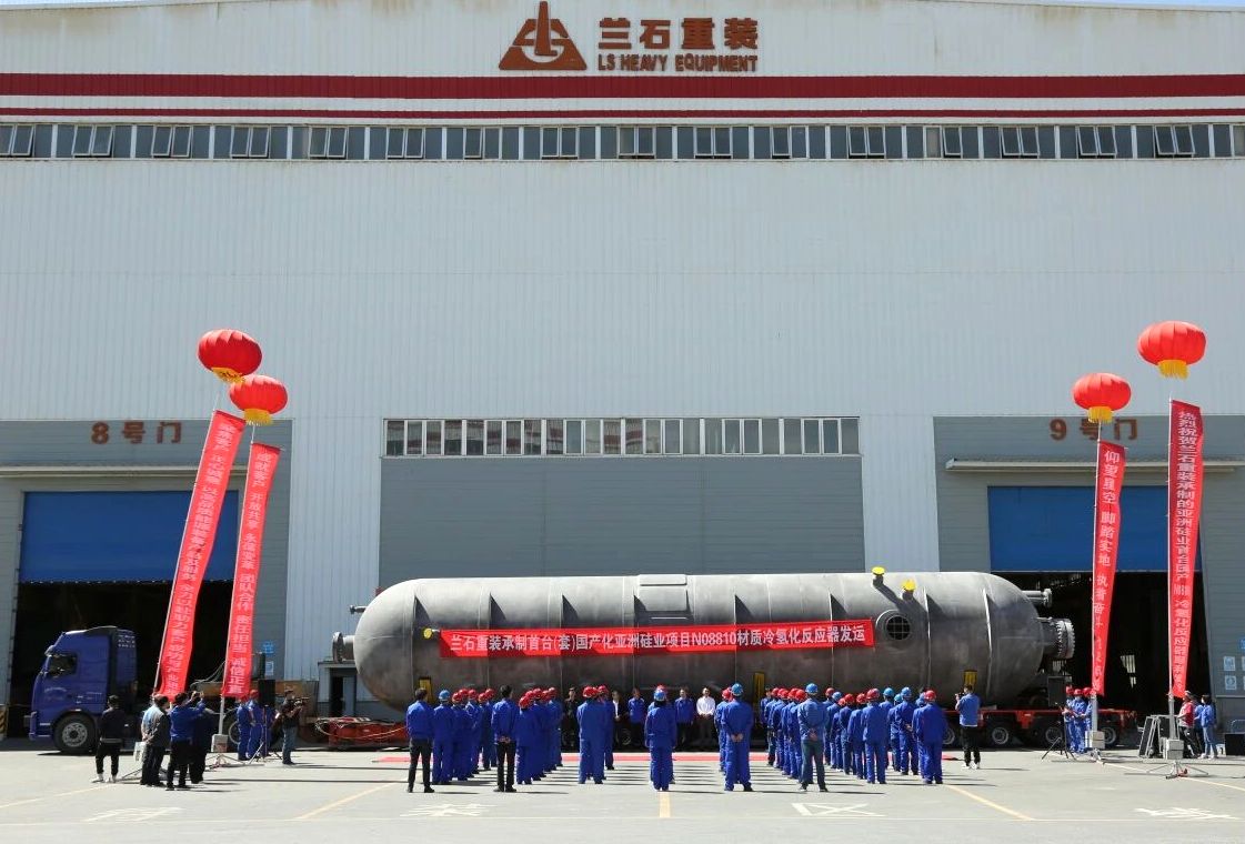 ▲兰石重装公司承制的首台(套)国产化N08810冷氢化反应器完工发运