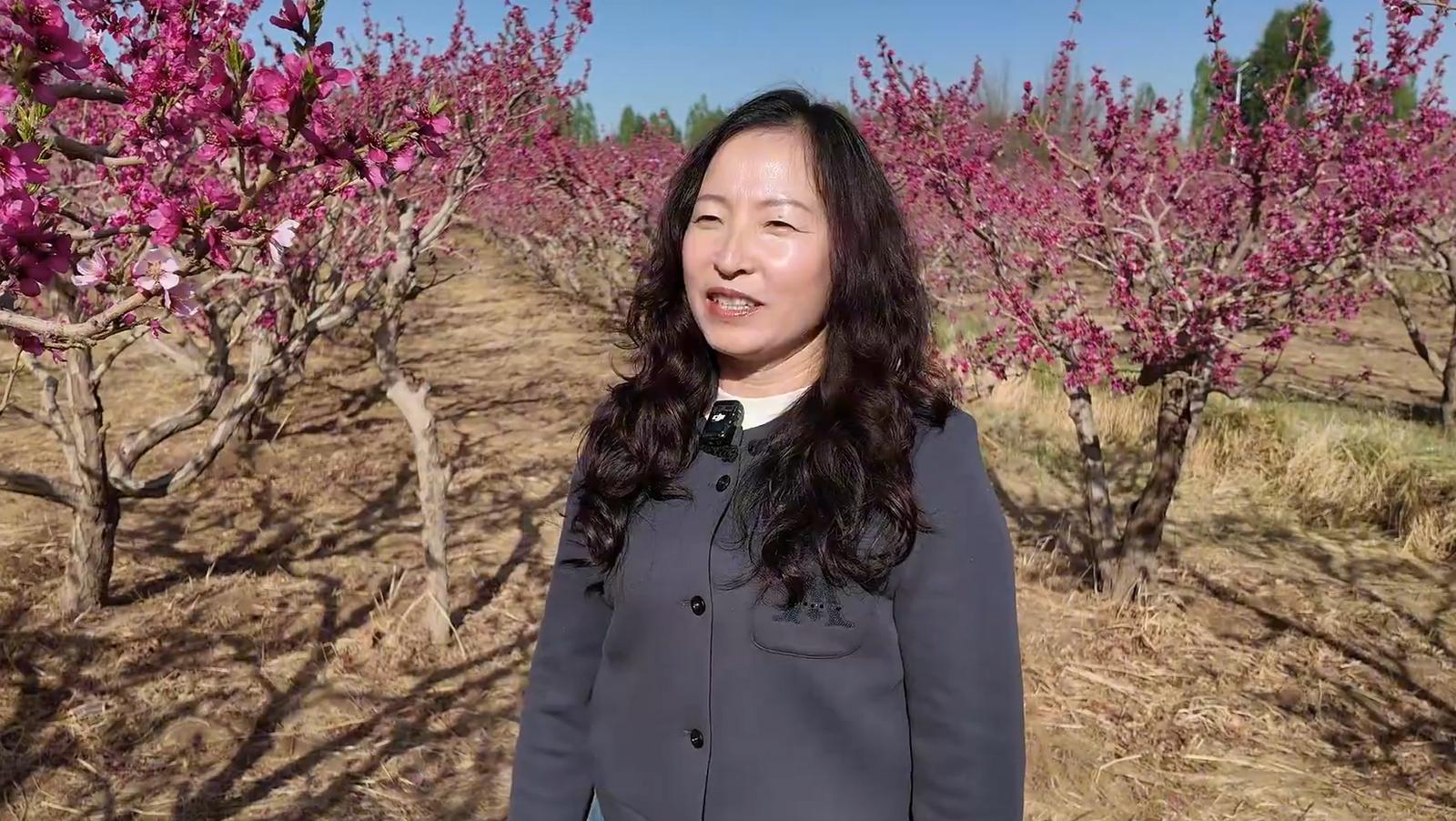 敦煌市七里镇杜家墩村村民孟红香说:“现在正是桃花盛开的季节,欢迎大家来到我们杜家墩村九组桃园基地踏青赏花,打卡拍照,拍抖音发视频。”