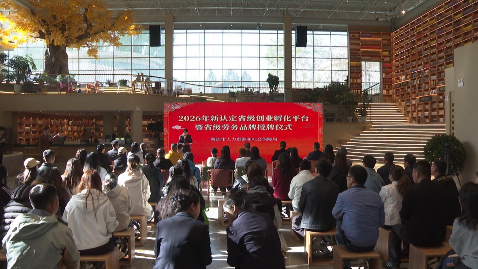 活动现场举行省级创业孵化平台、省级劳务品牌授牌仪式,分别为获评省级创业孵化平台的敦煌工美文化创意有限责任公司、被认定为省级劳务品牌的敦煌莫高里工匠村非遗文化教育科技有限公司授牌。两家单位负责人依次作表态发言,纷纷表示将以此次授牌为新起点,进一步发挥资源集聚与品牌辐射作用,持续提升创业孵化能力、技能培训水平和就业吸纳规模,为特色产业提质增效、推动高质量就业提供坚实支撑。