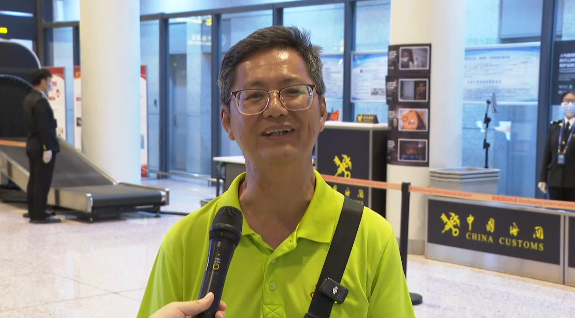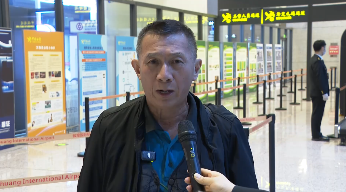 马来西亚游客邓森:“很高兴搭乘这趟航班来到敦煌,过海关时工作人员很贴心,服务很好。我是第一次来敦煌,中国其他省份我也去过很多。“