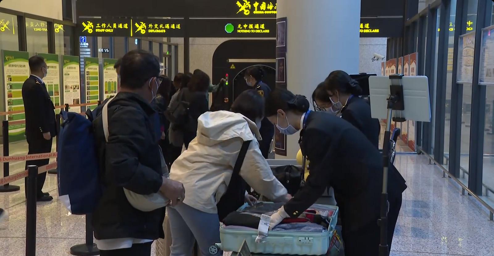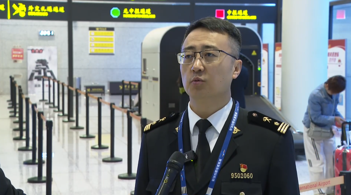 敦煌机场海关副关长马彬:“为进一步提升旅客通关体验,兰州海关所属敦煌机场海关持续优化旅客健康申报、行李物品监管等关键环节,深度应用自助申报一体机、CT机智能审图、‘慧眼智查’等技术手段,实现监管更精准、通关更高效。同时,我关打造‘丝路莫高·暖心相伴’服务品牌,在旅检现场设置醒目指引标识,主动提供通关政策解读与疑难解答,营造便捷温馨的通关环境。“