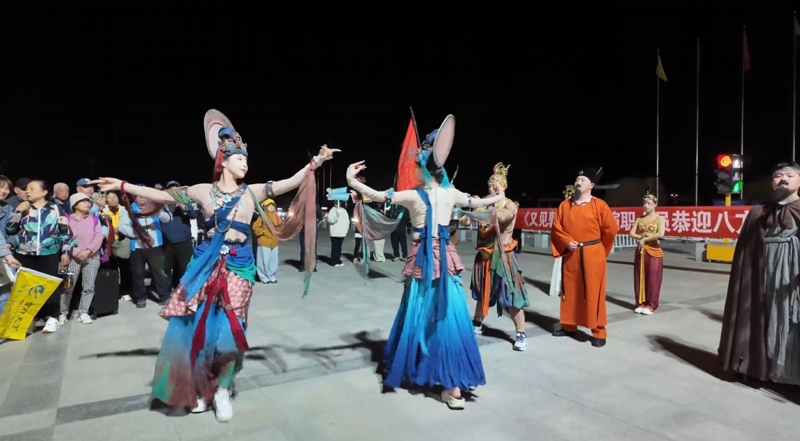为迎接远道而来的游客,敦煌市精心筹备了“丝路入关・敦煌接福”主题迎宾仪式,让宾客刚下火车便感受到古郡敦煌的厚重文化与满满诚意。活动现场,《又见敦煌》《乐动敦煌》的演员、舞者悉数登场,氛围感拉满。阳关将军率先高声致辞迎客,古朴真挚的问候瞬间拉近了与游客的距离。随后,演员们通过特色走场生动还原古阳关通关盛景,将丝路文化的独特魅力展现得淋漓尽致,让游客在抵达之初便深切体悟到敦煌文旅的别样温情与深厚底蕴。