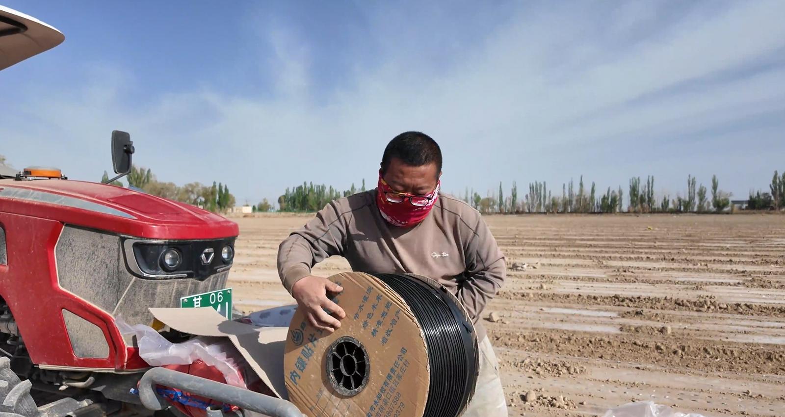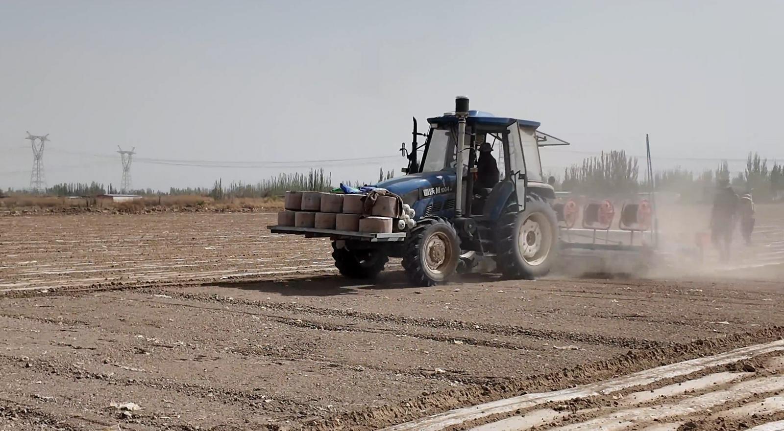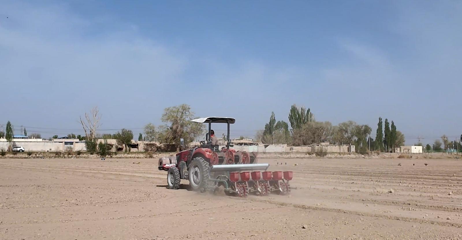 敦煌市莫高镇新店台村农户柴文山说:“今年新店台村预计总共种1700多亩棉花,截至现在已经种了600多亩。以前人工种植一天就种20亩左右,现在因为播种机带着导航,播种速度也快,一天能种50亩左右。”