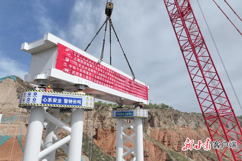 新甘肃客户端兰州讯(新甘肃·甘肃日报记者 刘健)记者从中铁十四局获悉,4月18日,随着一片重约122.56吨的钢盖梁成功吊装,全国首例三肢式钢格构柱混凝土特大桥——兰州至永靖至临夏高速公路大夏河特大桥完成首片钢盖梁吊装施工,建设取得重大建设,为上部结构施工按下加速键。